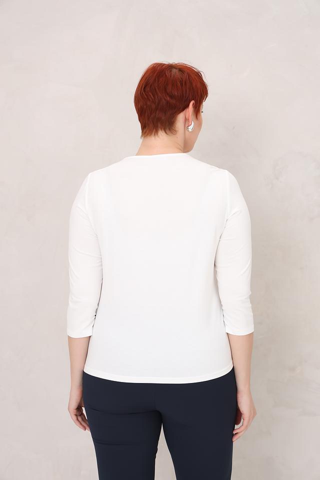 Белая блуза Frank Walder с V-образным вырезом и рукавами 3/4 – элегантный выбор для создания стильного образа. Изготовлена из мягкой вискозы с добавлением эластана, обеспечивающего комфорт и свободу движений. Состав: вискоза 93%, эластан 7%