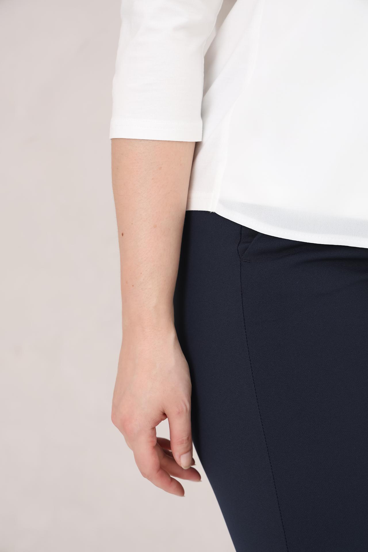 - Комфорт и практичность. Мягкая вискоза с добавлением эластана обеспечивает превосходную эластичность, позволяя блузе не сковывать движений и сохранять форму.