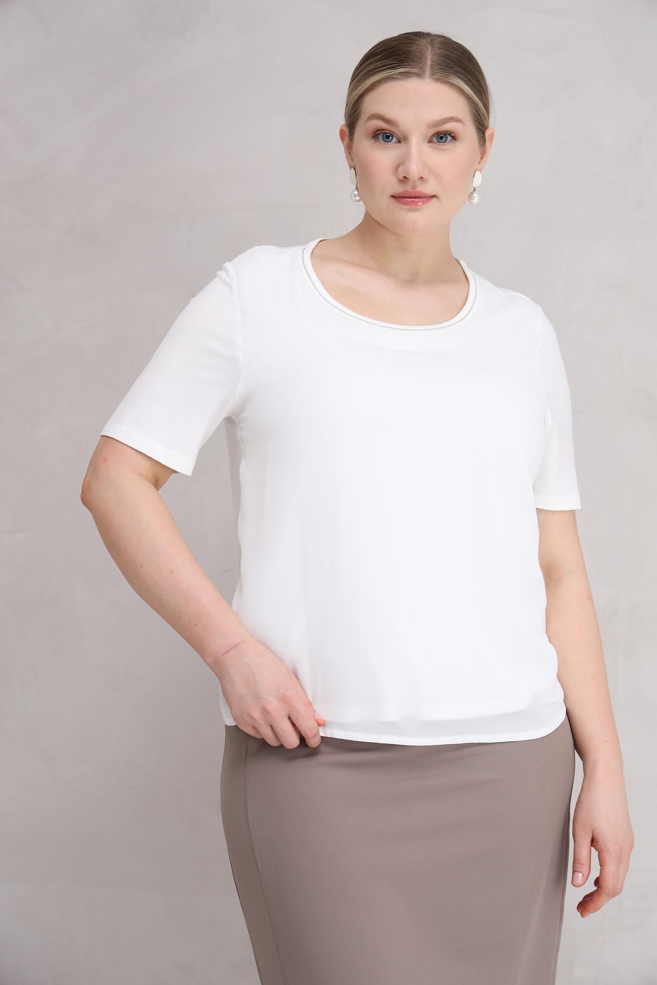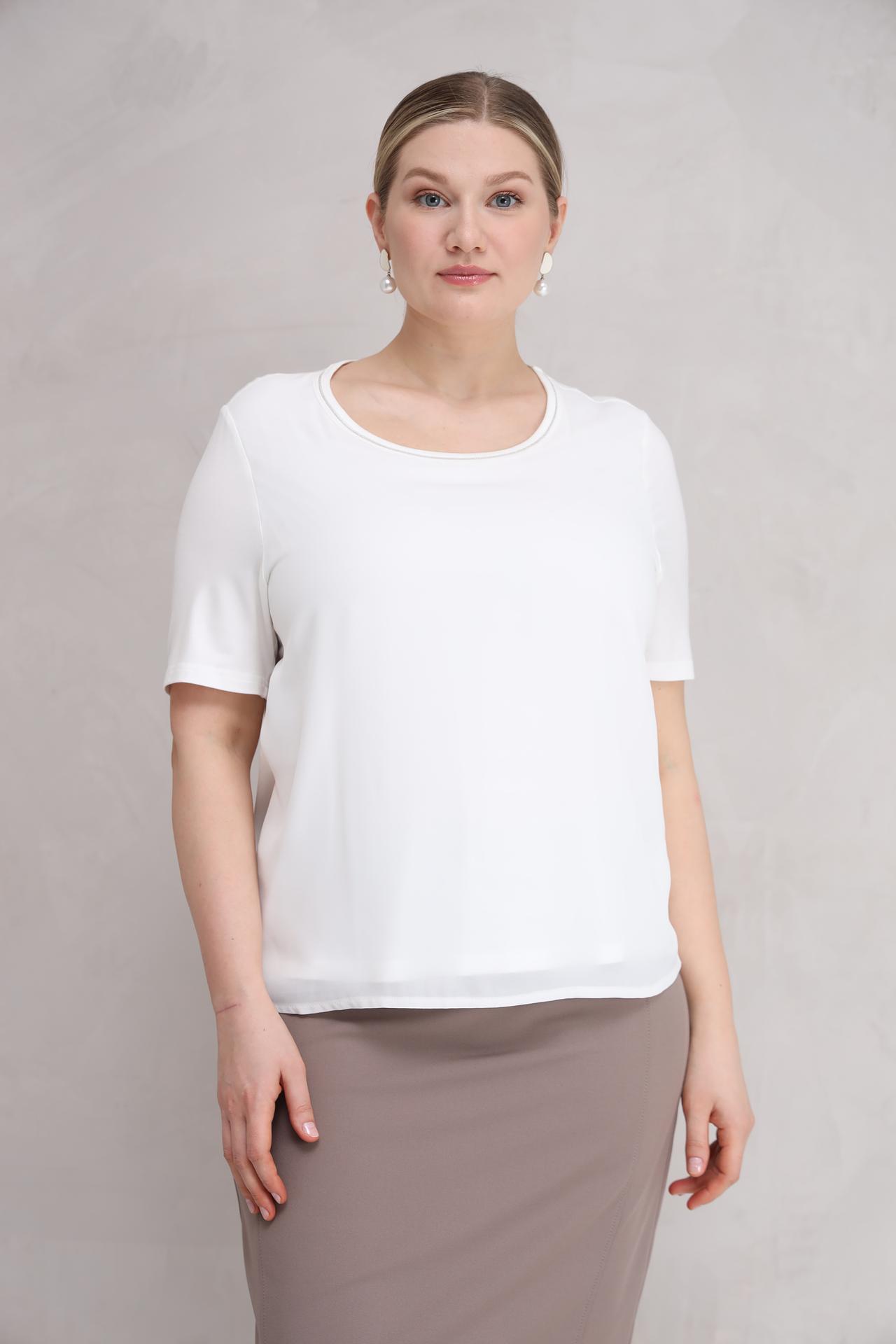 - Дизайн: Классический крой с круглым вырезом горловины делает блузку универсальной для различных стилей и образов.