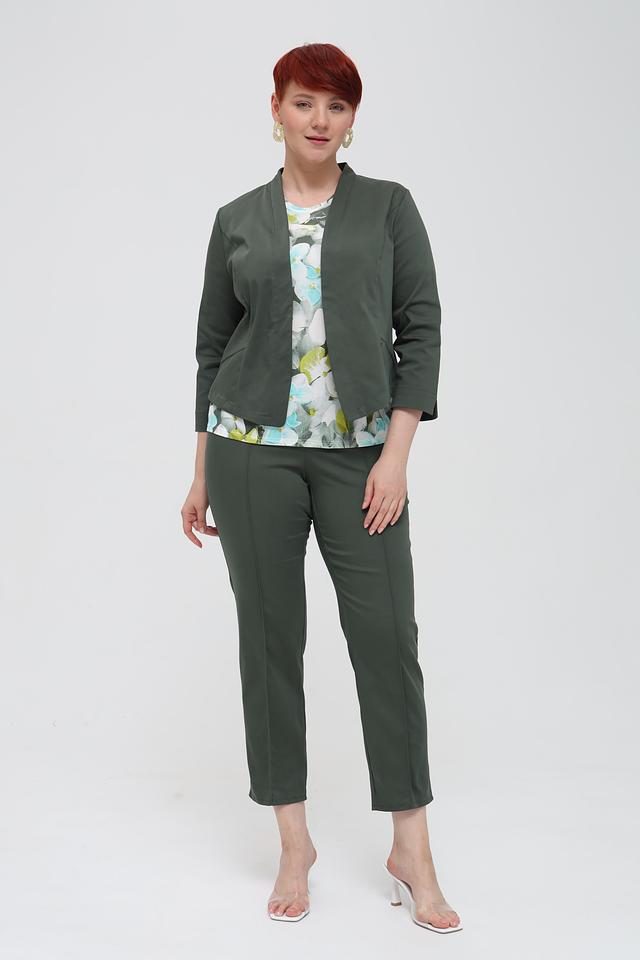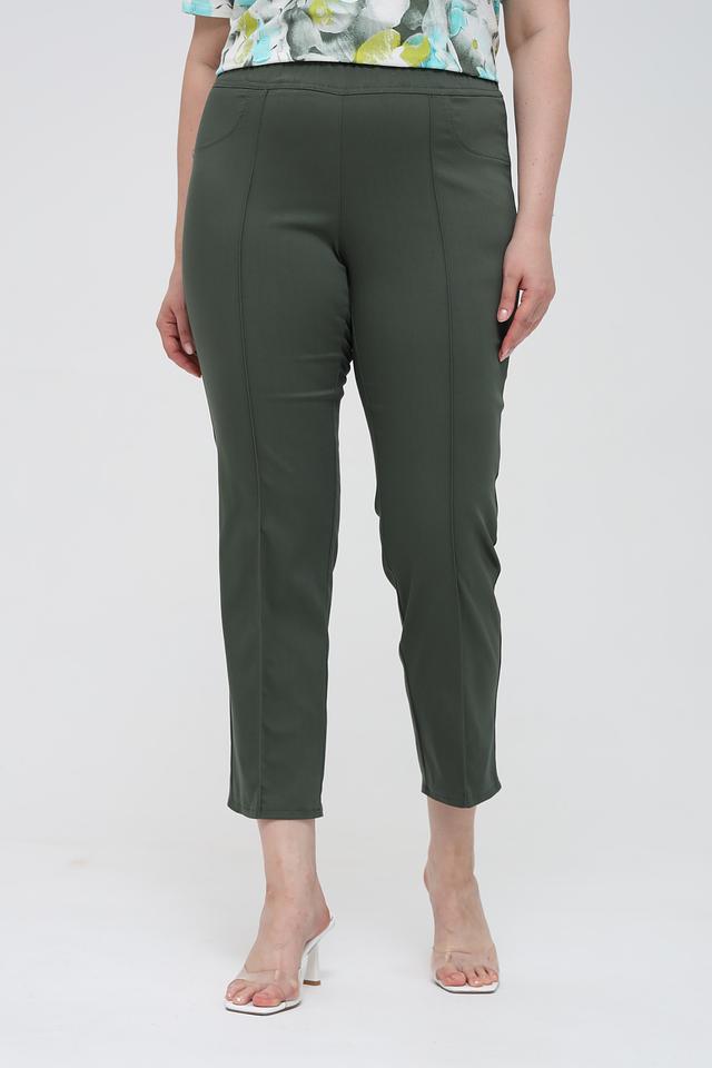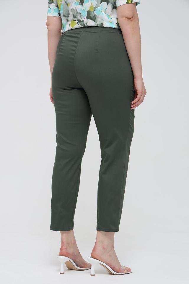 Брюки оснащены вертикальными вытачками, которые визуально вытягивают силуэт. Застежка – пояс на резинке, что делает посадку максимально комфортной. Данная модель идеально сочетается с блузками, рубашками и жакетами, создавая стильные и элегантные комплекты.