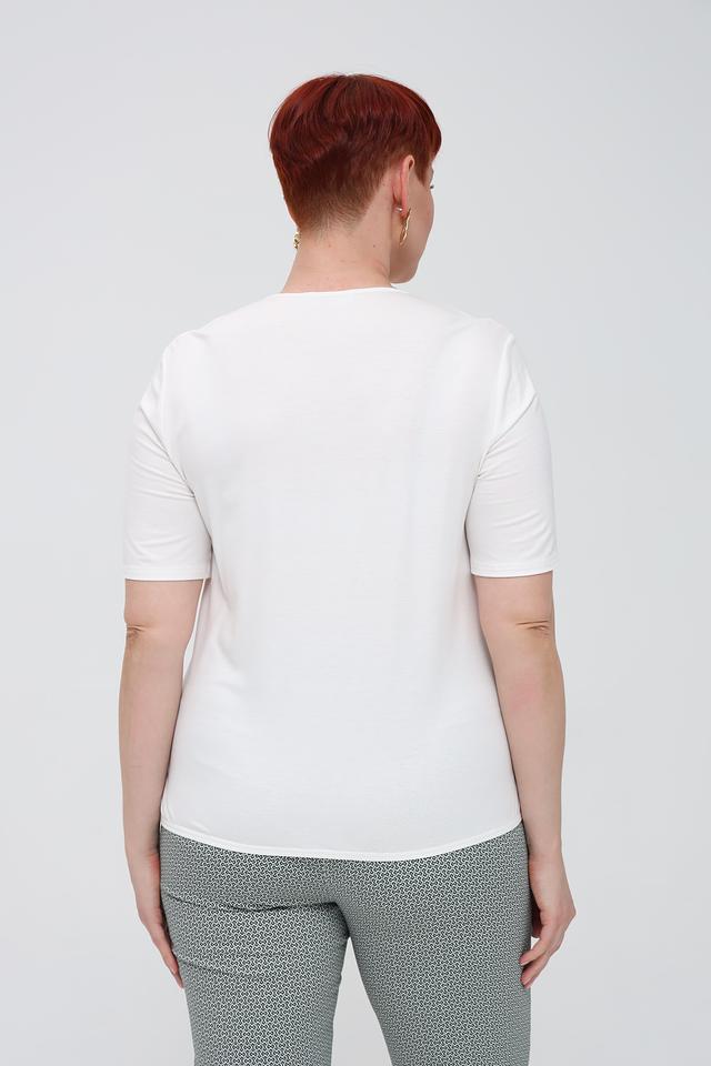 Состав блузы: 93% вискоза, 7% эластан. Благодаря этому сочетанию материалов, блуза хорошо драпируется, не мнется и легко стирается. Белый цвет делает ее универсальной и подходящей для любого случая.
