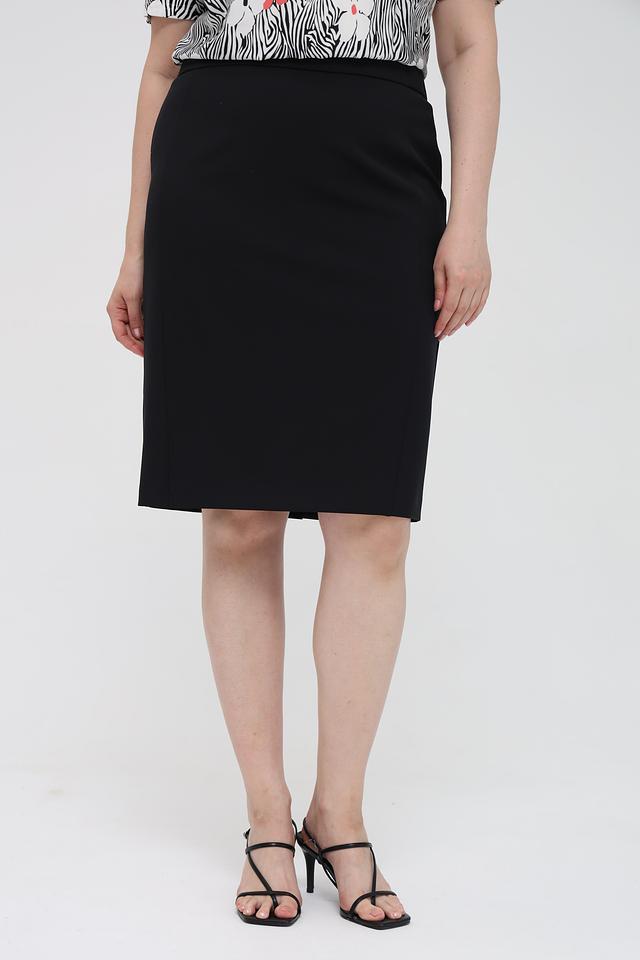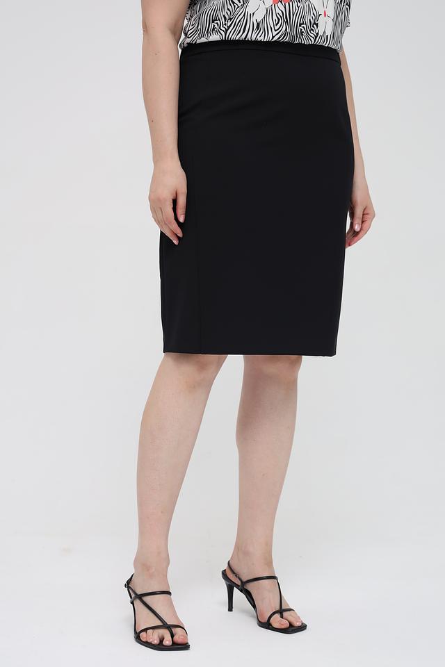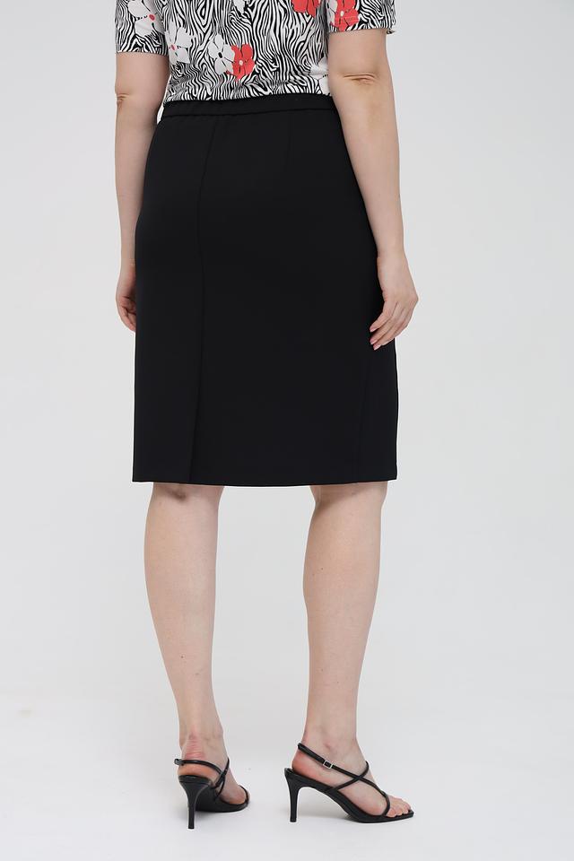 Юбка имеет прямую посадку по фигуре, подчеркивающую достоинства силуэта. Благодаря сочетанию полиэстера и эластана, юбка хорошо держит форму, не мнется и обеспечивает комфорт в носке.