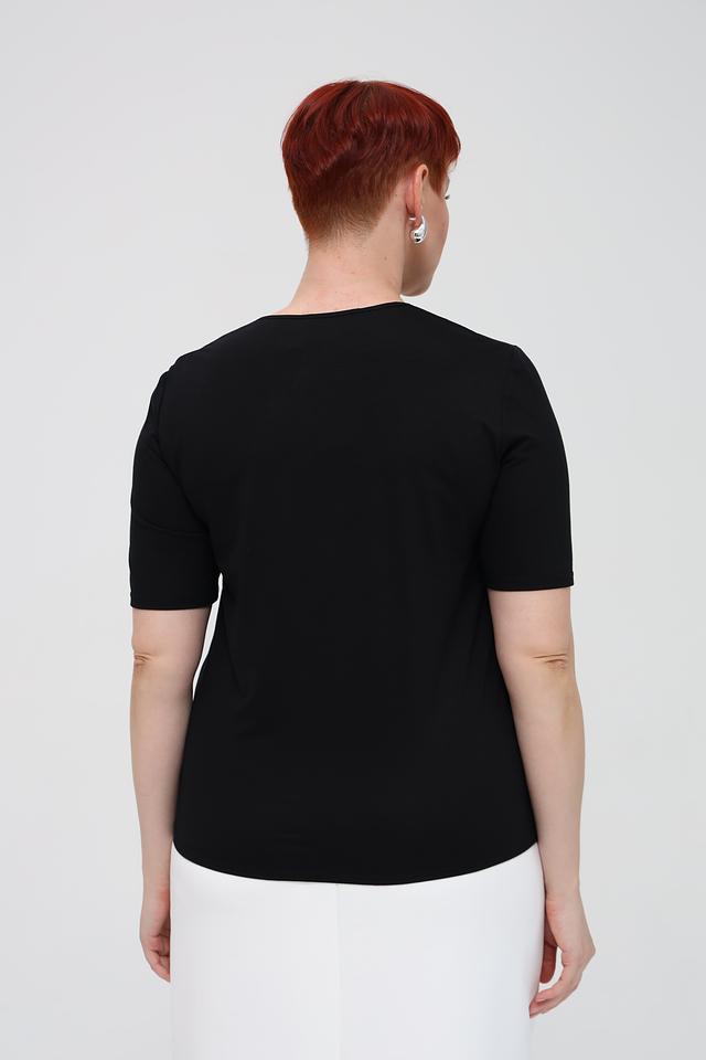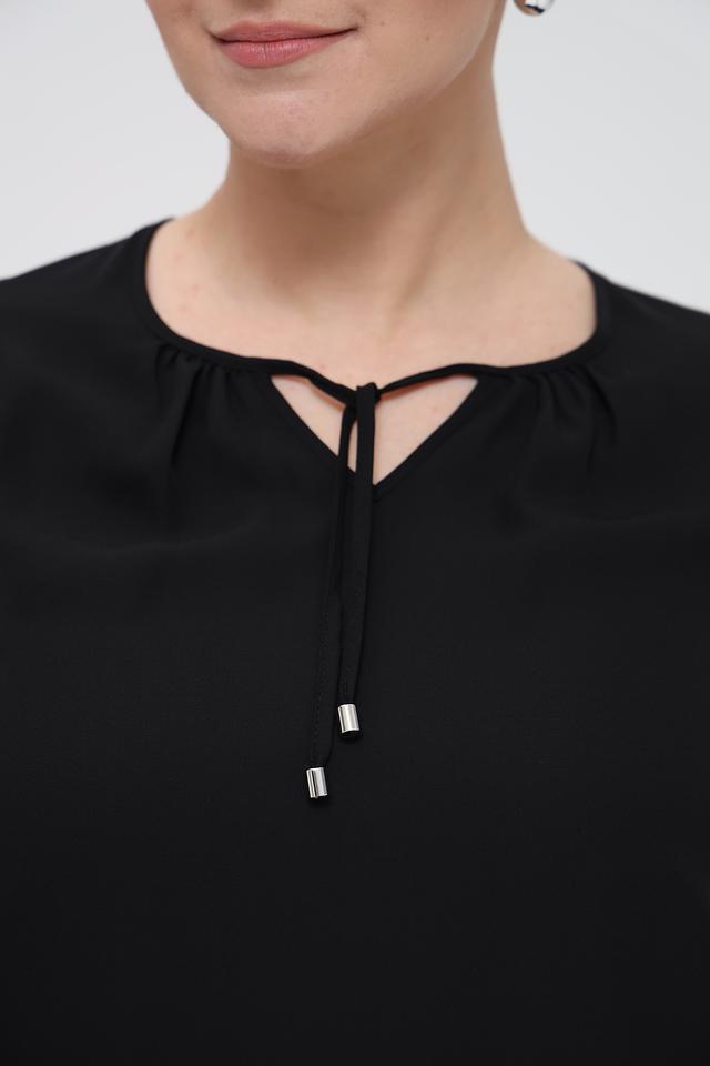 Чёрная блуза Frank Walder с короткими рукавами и декоративными завязками на вырезе. Изготовлена из мягкой вискозы с добавлением эластана, обеспечивающего комфортную посадку. Стильный и универсальный вариант для создания элегантных образов. Состав: вискоза 93%, эластан 7%