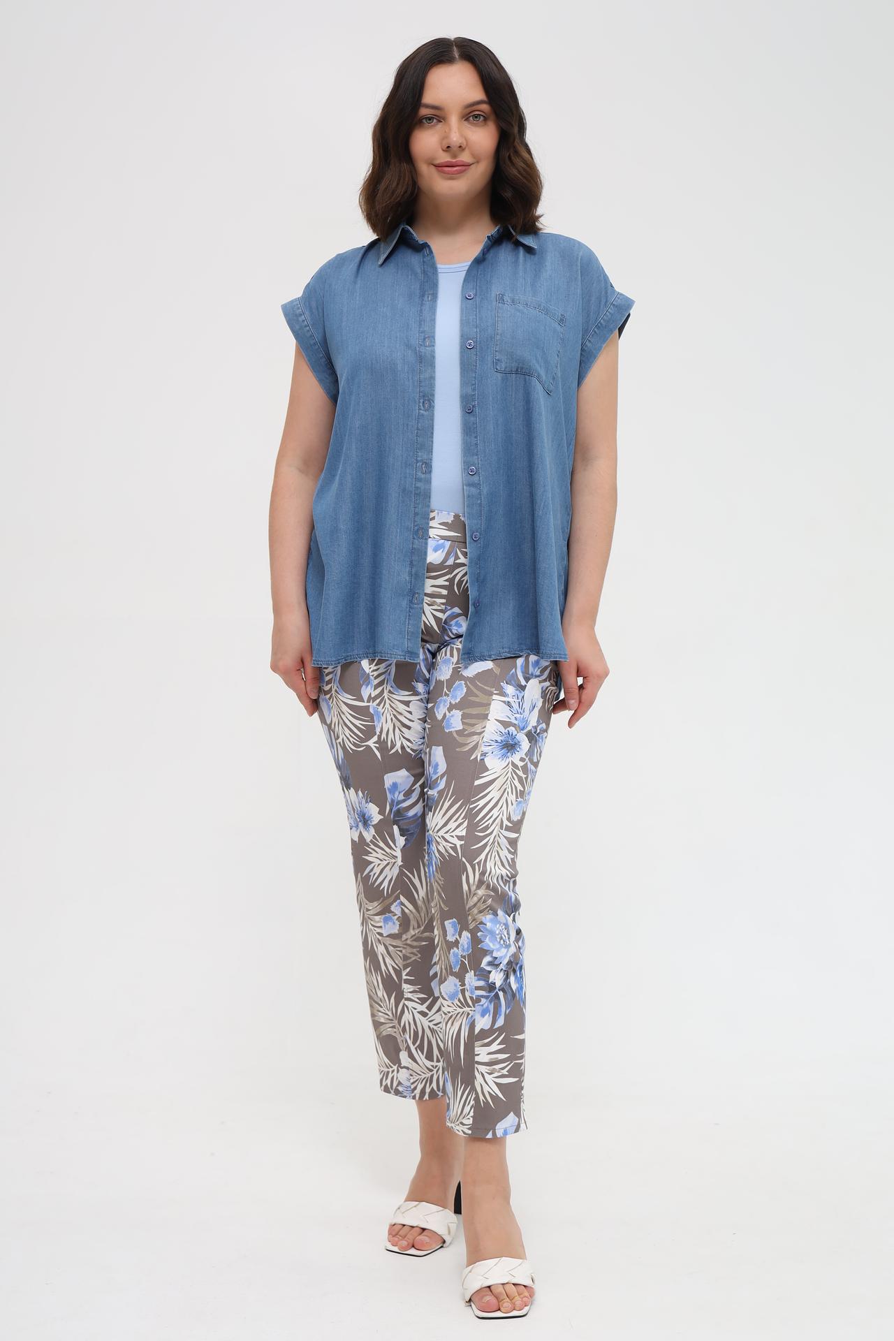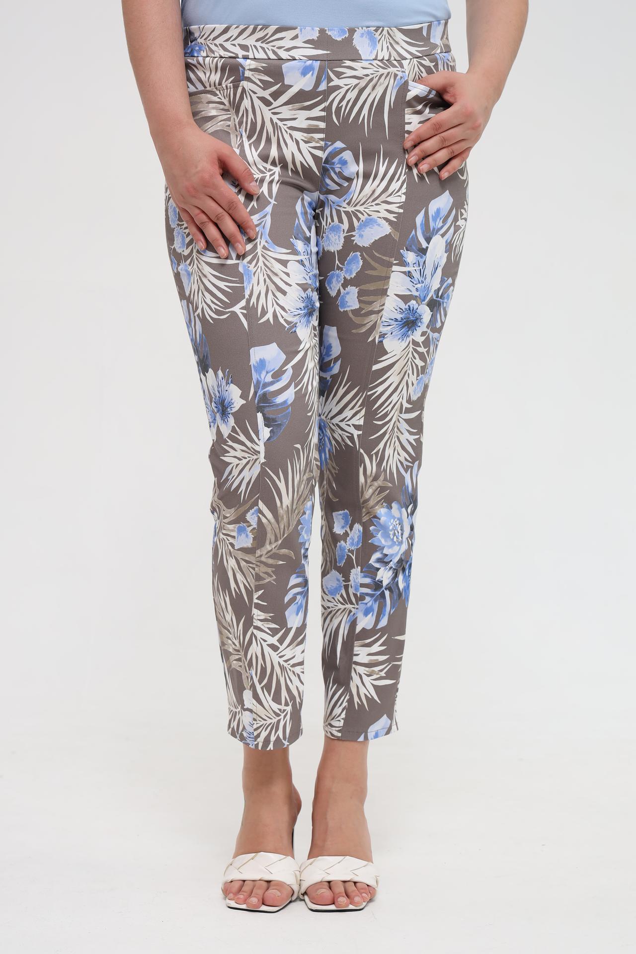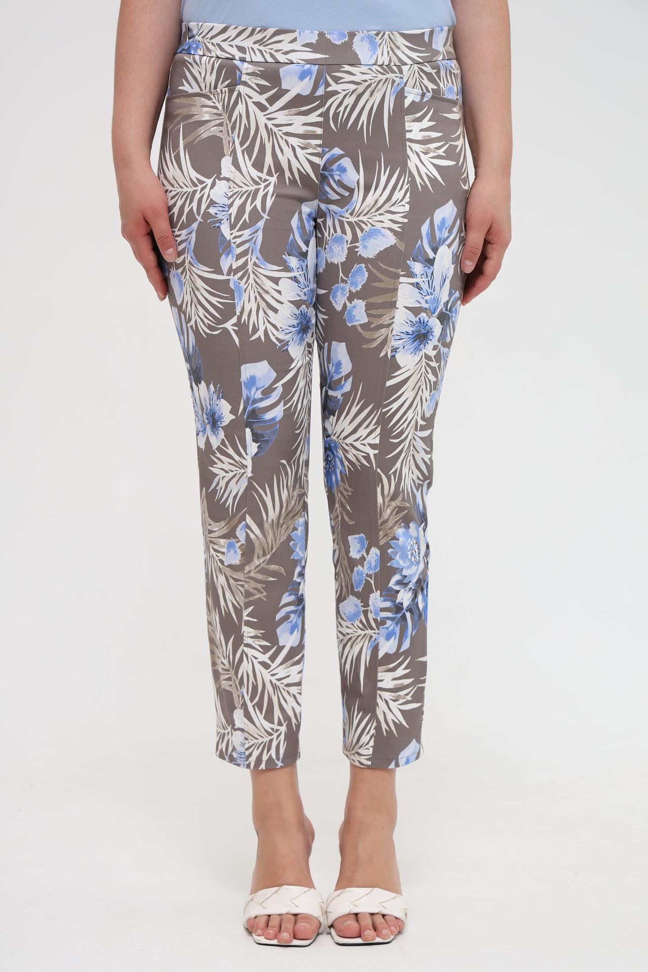 Модель украшена изысканным цветочным принтом в нежных оттенках, который придает изделию особое очарование и шарм. Этот универсальный дизайн позволяет легко сочетать брюки как с однотонными блузами, так и с легкими рубашками, создавая разнообразные образы для офиса или повседневных прогулок.