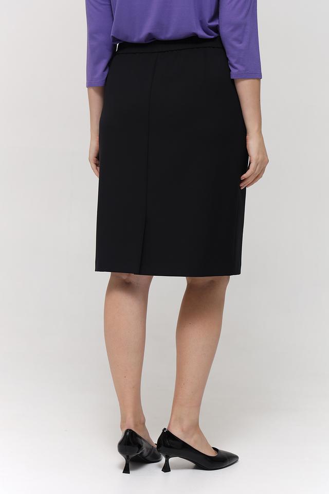 Декоративные элементы в виде небольших карманов на личной стороне юбки добавляют ей изысканности. Юбка имеет стандартную длину, подходящую для создания как деловых, так и повседневных образов. Благодаря эластану в составе, юбка хорошо тянется и не сковывает движений.