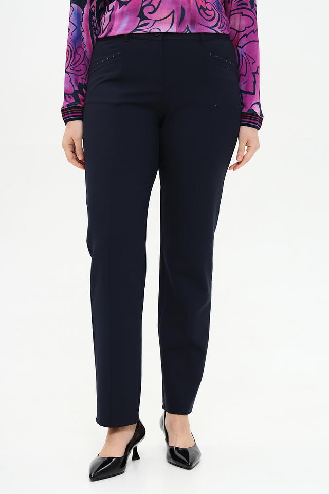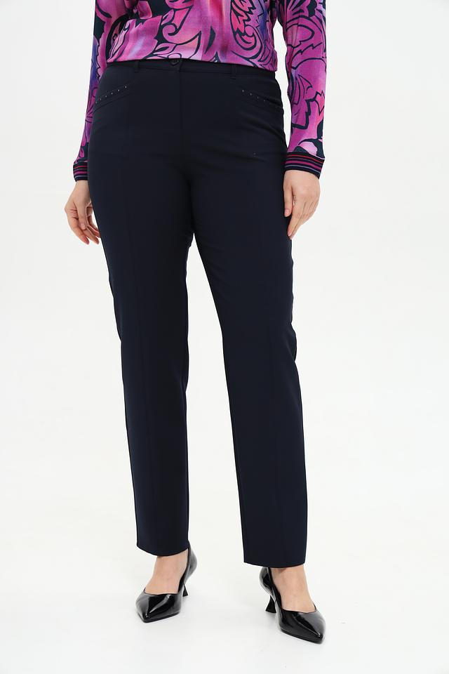 Декоративные элементы в виде небольших страз расположены на задних карманах, добавляя брюкам изысканности. Застёжка на молнии и пуговице обеспечивает надежную фиксацию. Эти брюки идеально подойдут для создания деловых и повседневных образов.