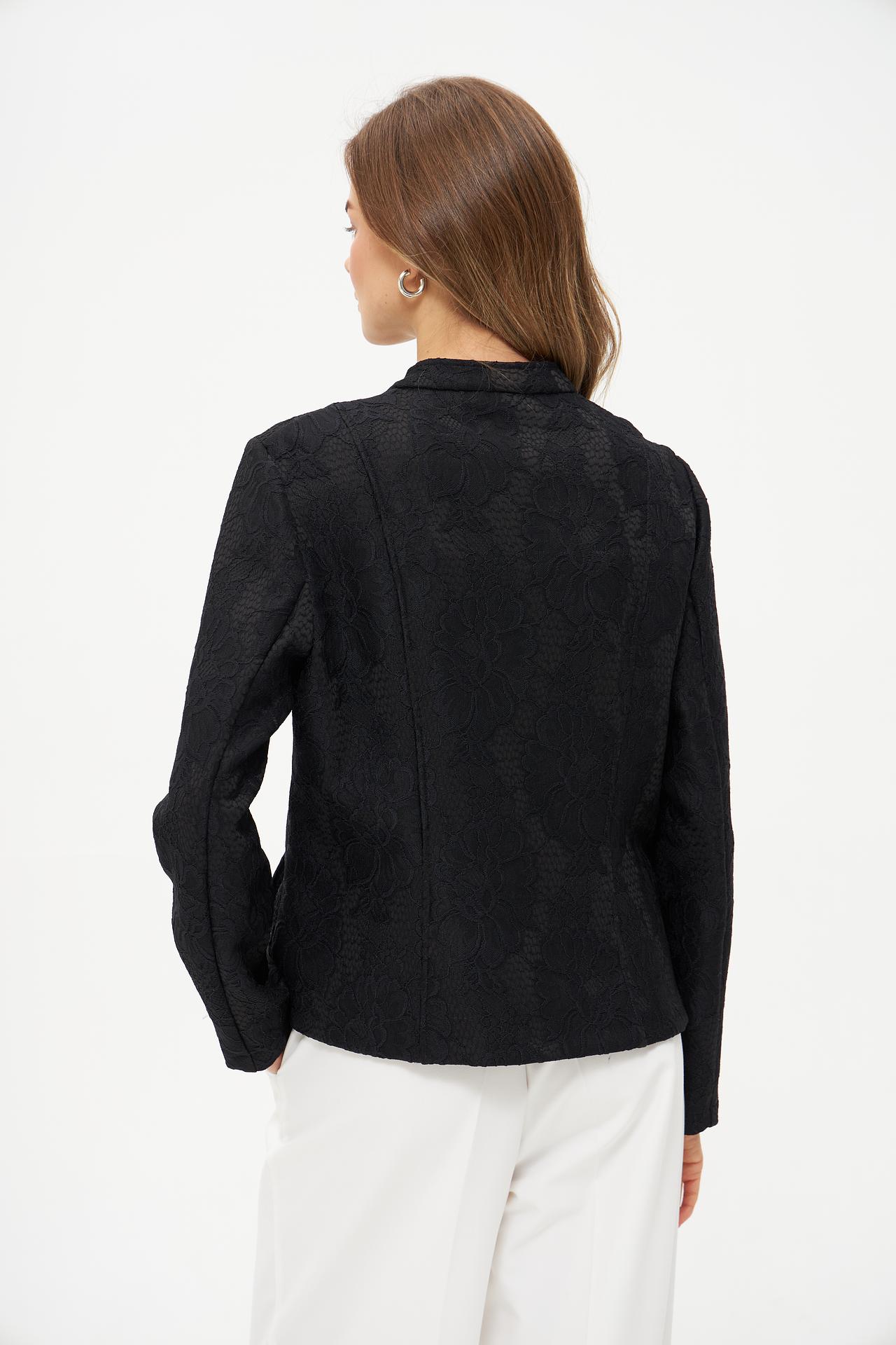 - Универсальность: Черный цвет и лаконичный дизайн позволяют сочетать жакет с различными предметами гардероба, создавая как строгие, так и более расслабленные образы.