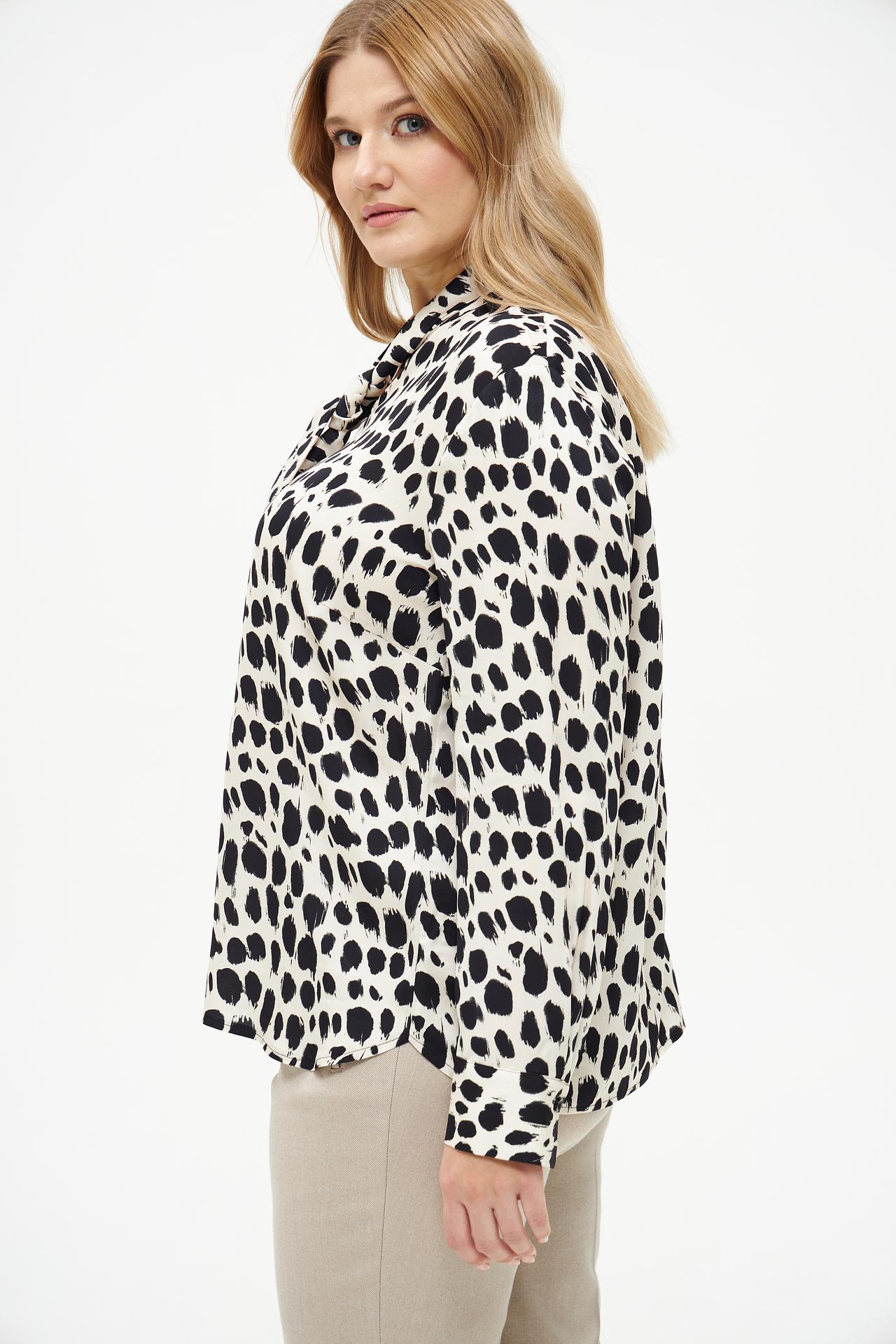 Эта стильная блуза идеально подойдёт для создания разнообразных образов – от деловых до повседневных. Сочетайте её с брюками, юбками или джинсами, чтобы подчеркнуть свою индивидуальность и безупречный вкус.