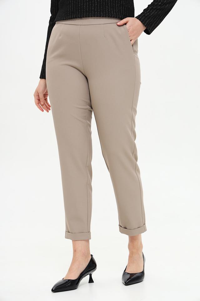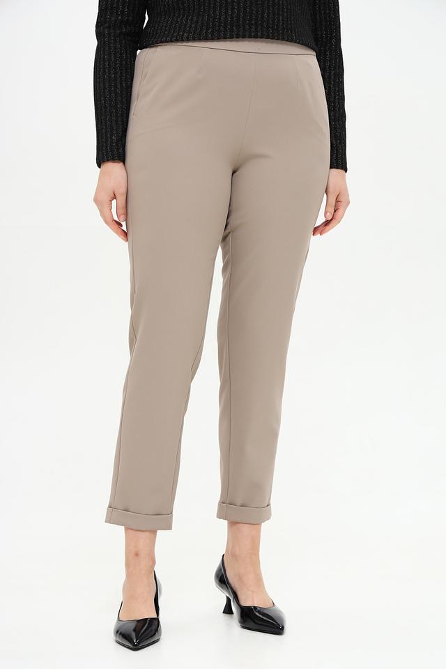 Бежевые брюки от Frank Walder из полиэстера с эластаном. Модель с эластичным поясом и укороченным силуэтом. Идеальный выбор для создания комфортных и стильных образов. Состав: полиэстер 88%, эластан 12%