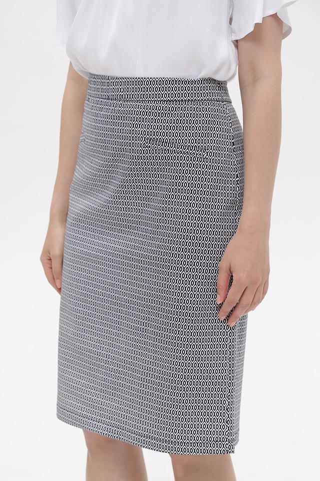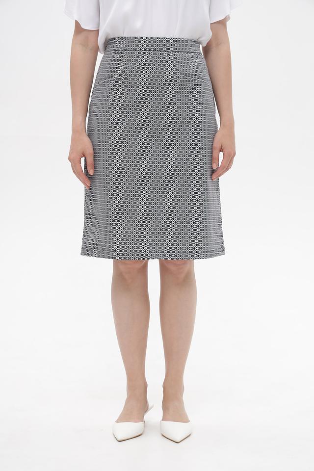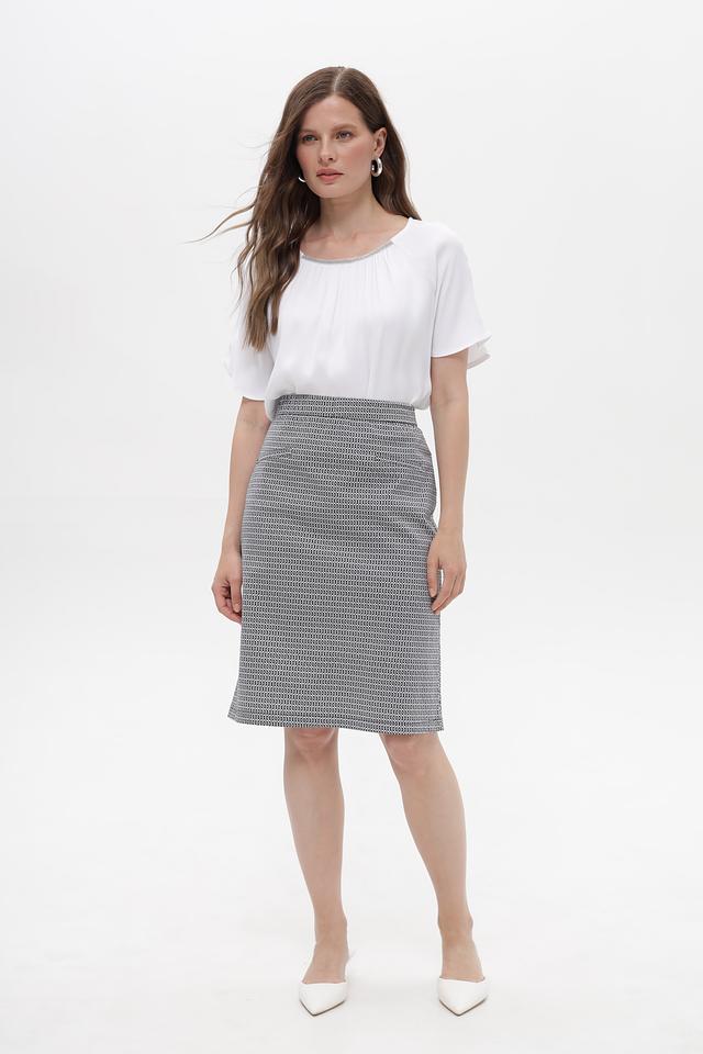 Эта юбка от Frank Walder станет прекрасным дополнением к вашему гардеробу. Выполнена в сером цвете с мелким геометрическим принтом, сочетающим в себе оттенки белого и чёрного.