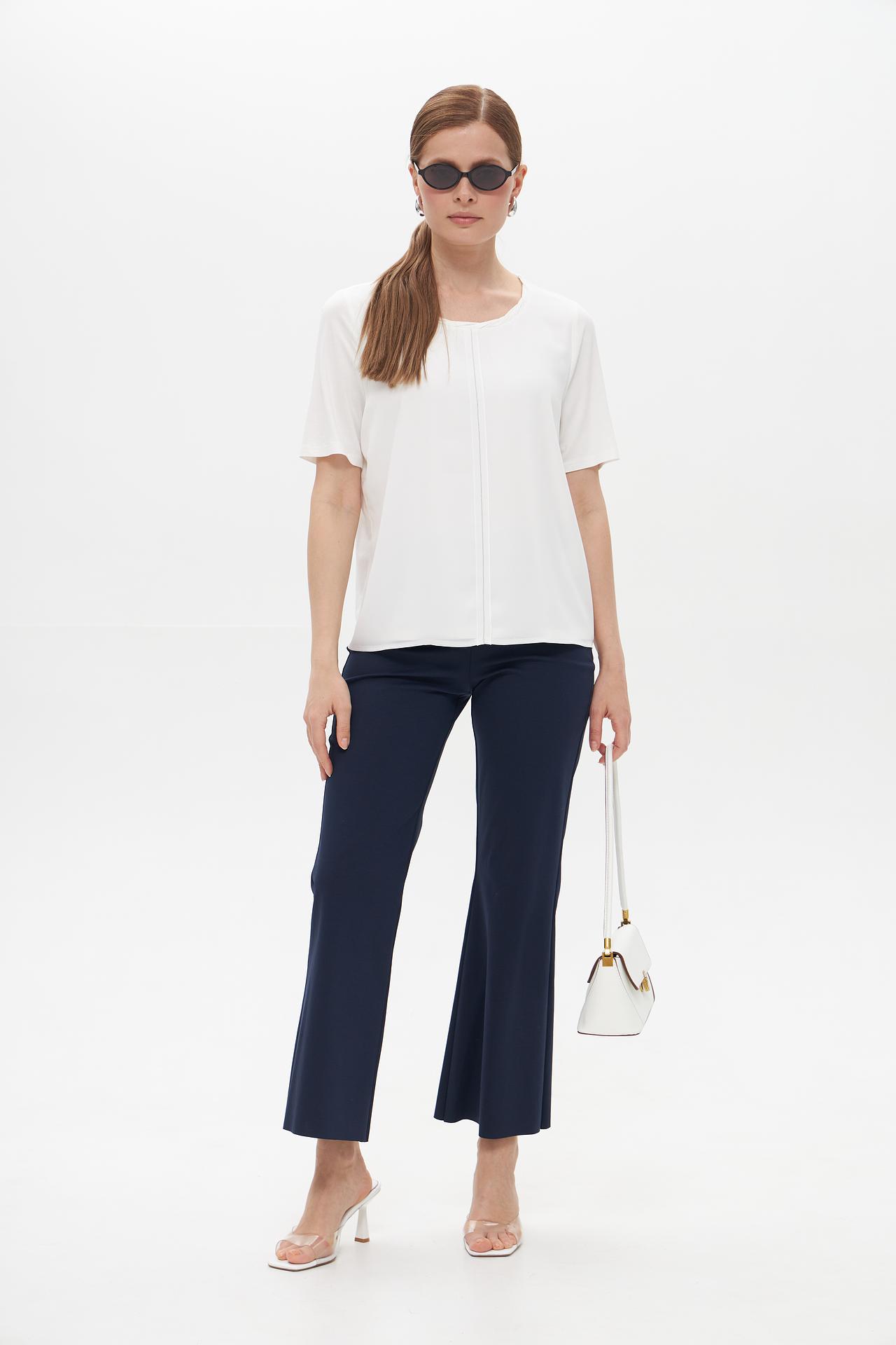 - Универсальный дизайн: Классический прямой крой и лаконичный дизайн делают блузу подходящей для создания разнообразных образов – от делового до повседневного. Она прекрасно сочетается как с классическими брюками, так и с джинсами.