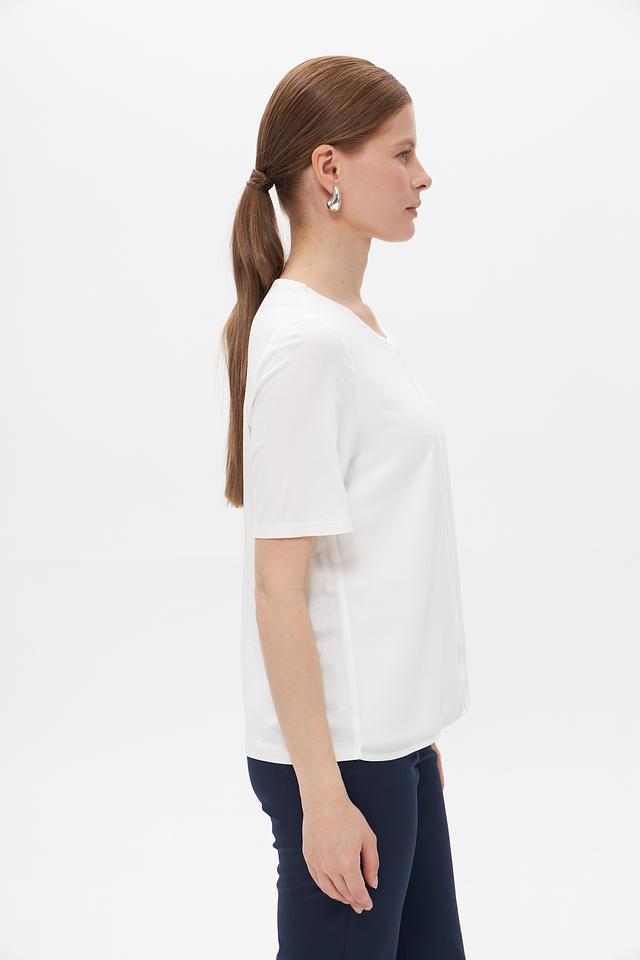 Белая блузка Frank Walder свободного кроя из вискозы с небольшими разрезами по центру. Модель с короткими рукавами и круглым вырезом горловины станет отличным дополнением к вашему гардеробу. Состав: вискоза 93%, эластан 7%