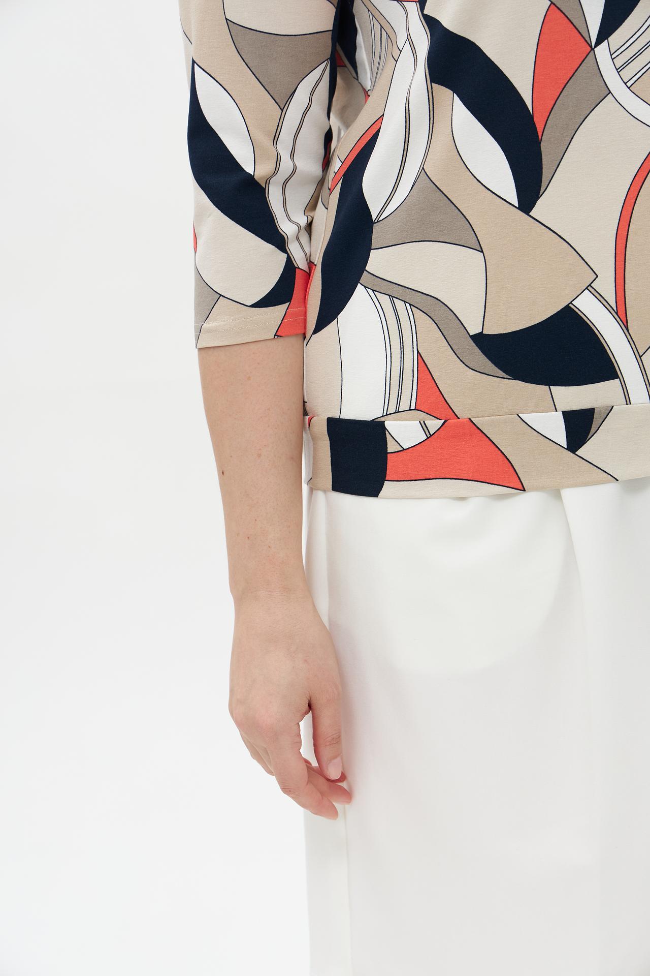 Элегантная футболка Frank Walder с оригинальным принтом станет прекрасным дополнением вашего гардероба. Изготовленная из мягкой и приятной к телу вискозы с добавлением эластана, она обеспечит комфорт и свободу движений в течение всего дня. Стильный узор добавит образу изысканности и неповторимости.