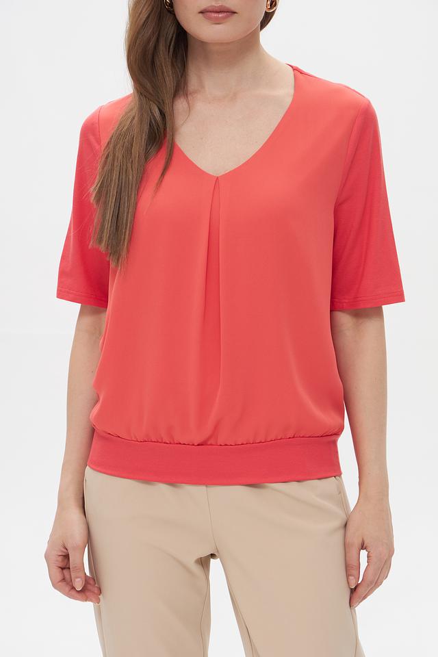 Блуза Frank Walder красная с V-образным вырезом и сборкой