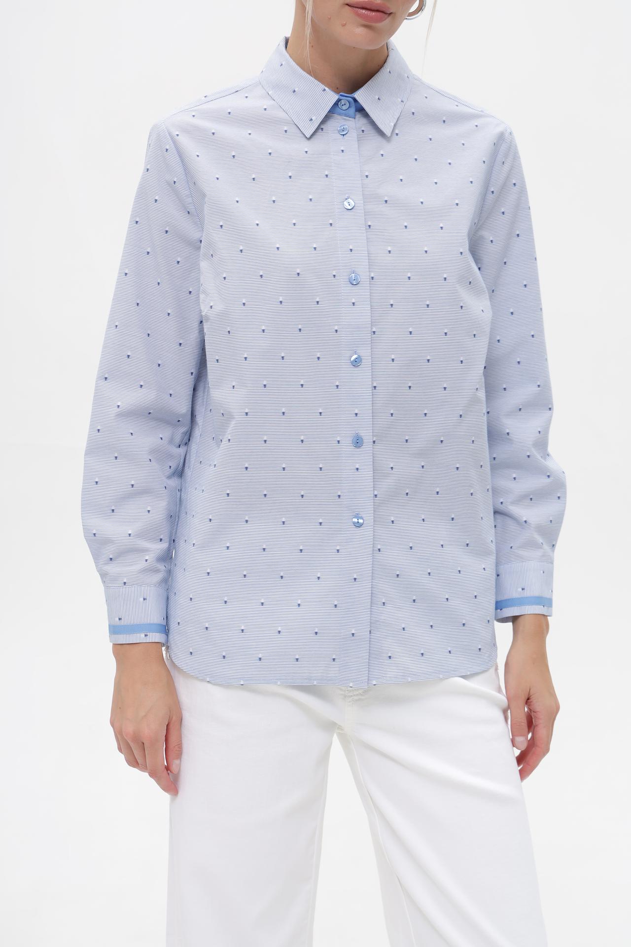 Блуза Frank Walder голубая в горошек с длинным рукавом