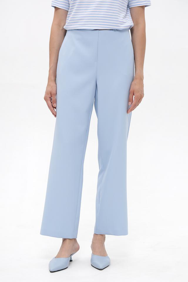 Женские брюки Frank Walder нежного голубого цвета, выполнены из полиэстера с добавлением эластана. Модель с эластичным поясом и широкими штанинами обеспечит комфорт и свободу движений. Состав: полиэстер 88%, эластан 12%