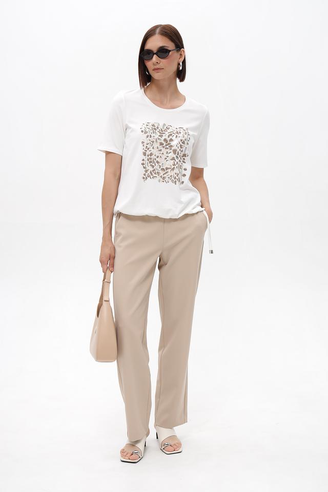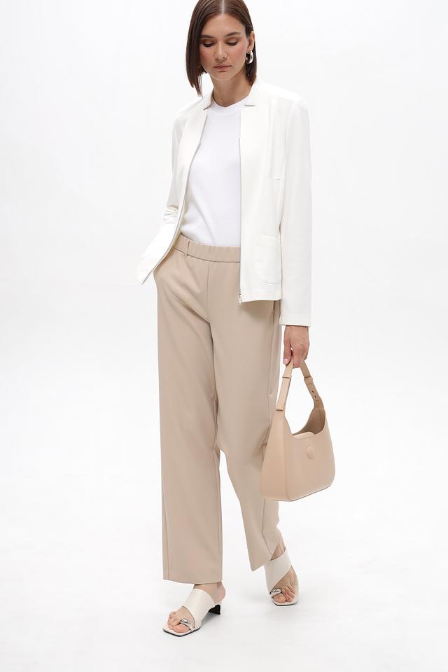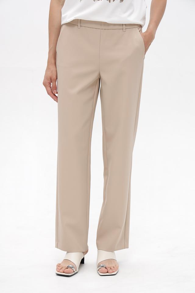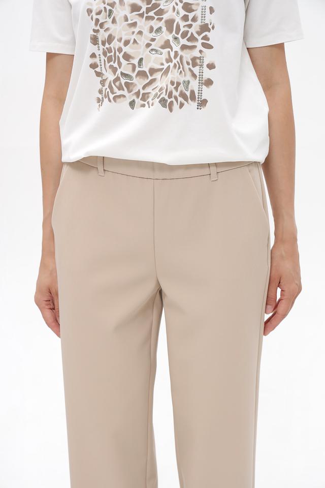 Модель выполнена в спокойном бежевом цвете, который легко сочетается с различными элементами одежды. Эластичный пояс обеспечивает удобную посадку по фигуре, а боковые карманы добавляют функциональности.