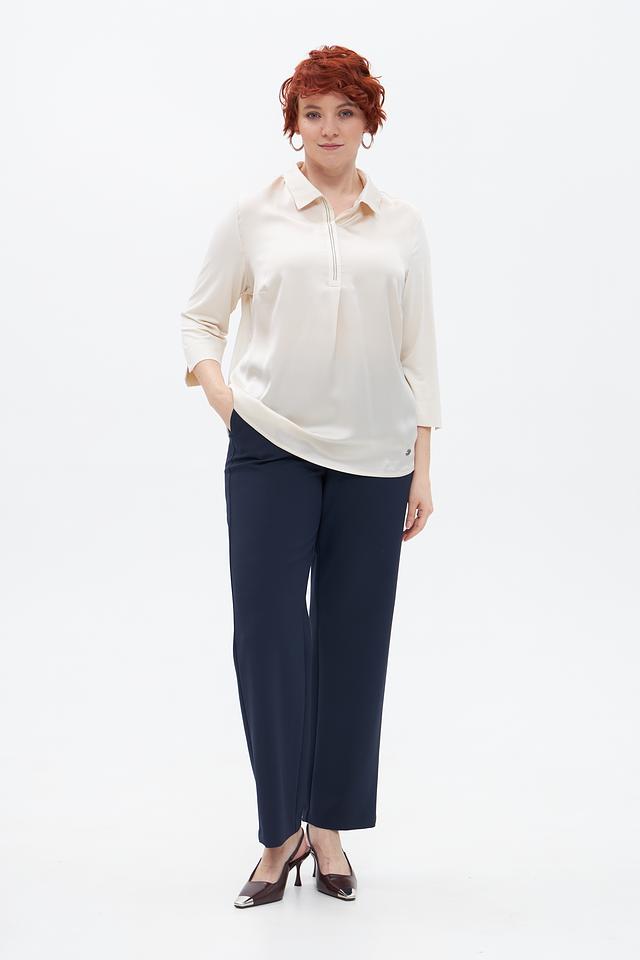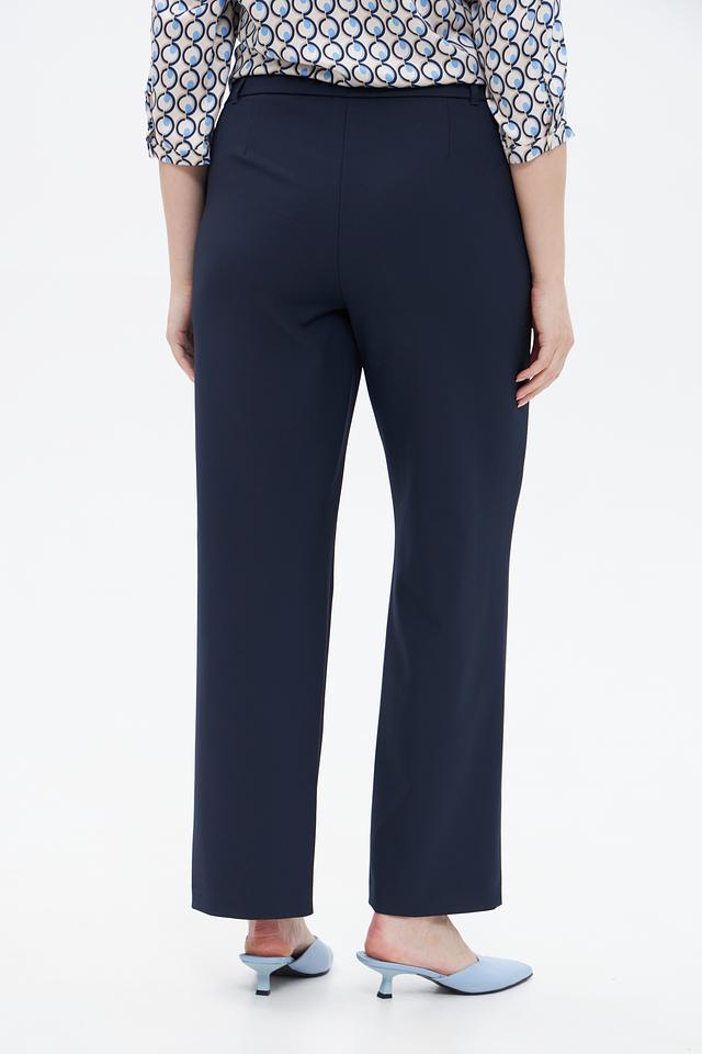 Брюки имеют прямой крой и высокую посадку, обеспечивающие идеальную посадку по фигуре и свободу движений. Изготовлены из высококачественного полиэстера с добавлением эластана, что обеспечивает износостойкость, приятные тактильные ощущения и небольшую эластичность.