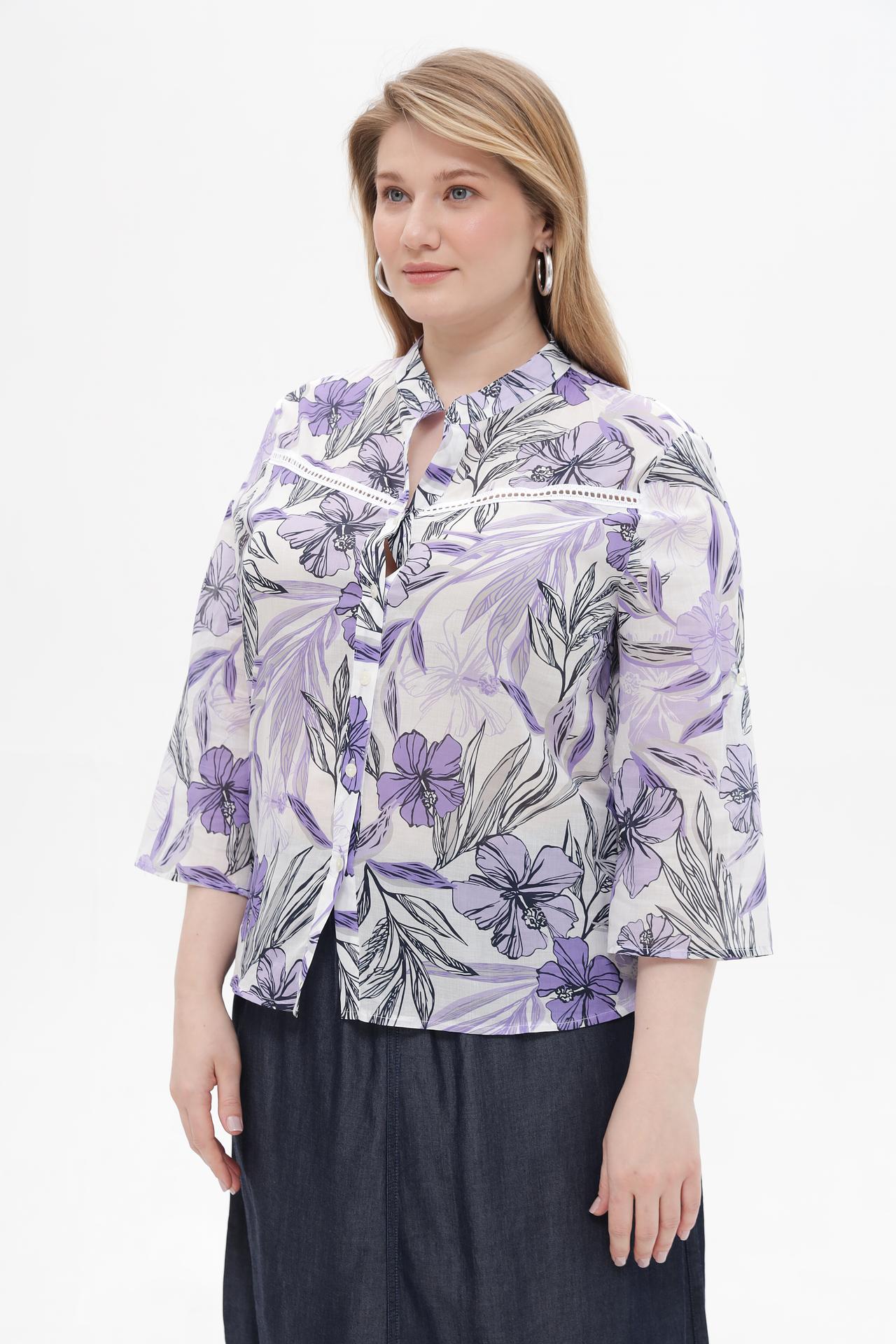 Блуза Frank Walder белая сиреневая цветочный узор отделка