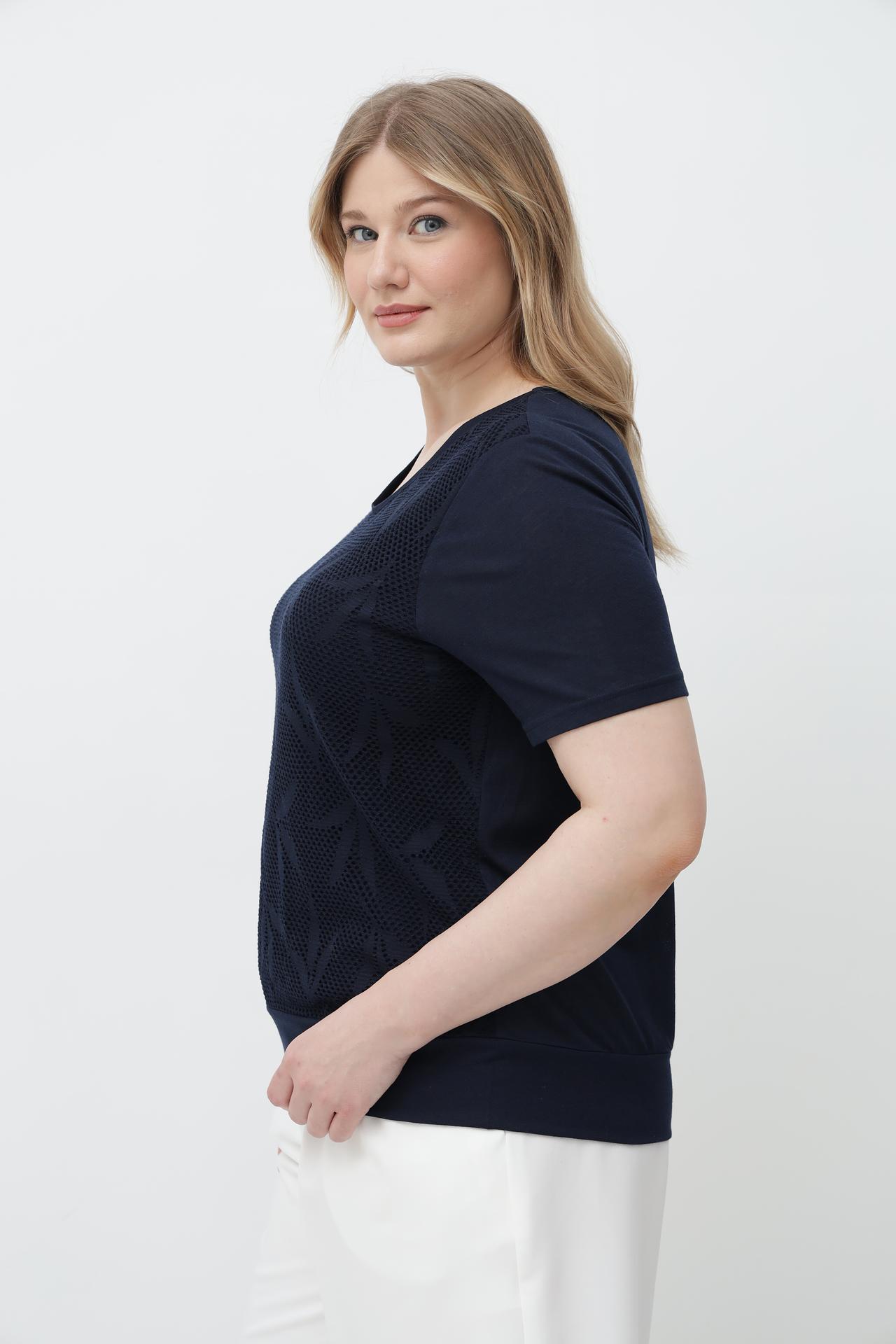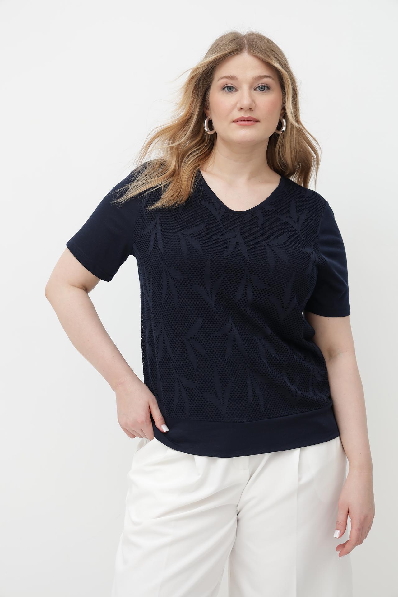 - Элегантный дизайн: Ажурная вставка придает футболке изысканный вид, делая её подходящей для различных случаев.