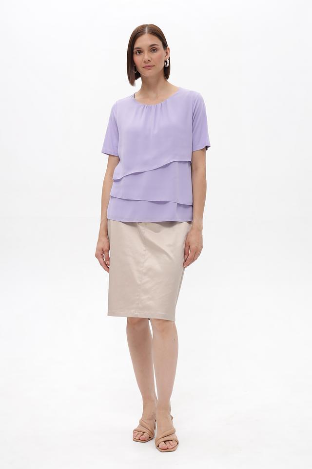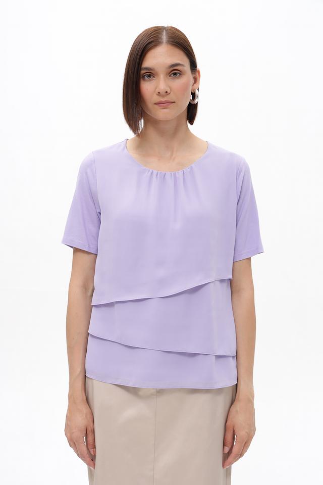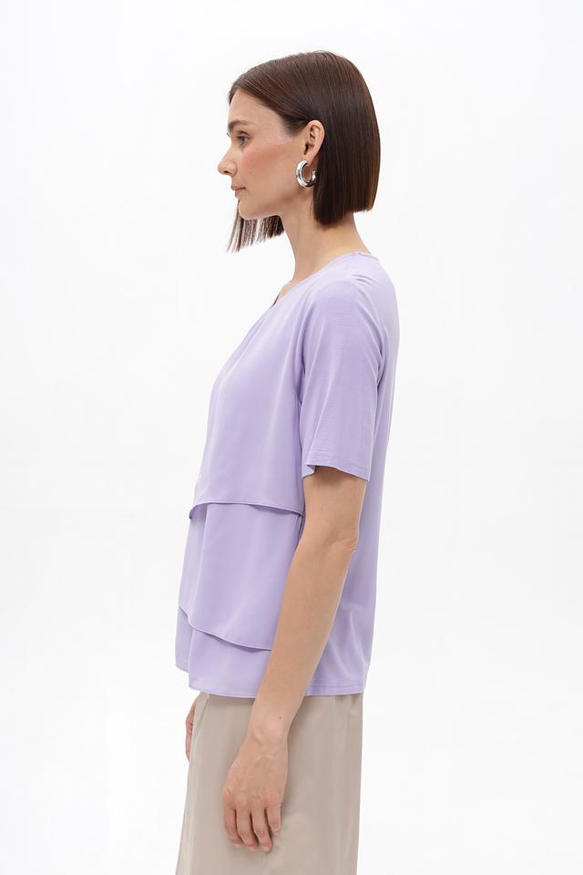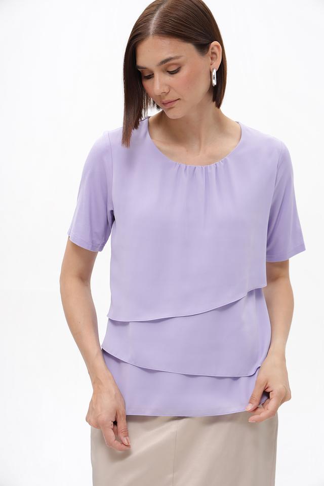 Лавандовая блузка Frank Walder из вискозы с многослойным дизайном. Изделие выполнено из мягкой вискозы с добавлением эластана для комфорта и лучшей посадки. Состав: вискоза 93%, эластан 7%