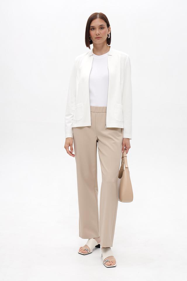 Жакет имеет приталенный силуэт, который подчеркивает фигуру. Застежка на молнию обеспечивает удобство и практичность. Воротник-стойка добавляет модели изысканности.