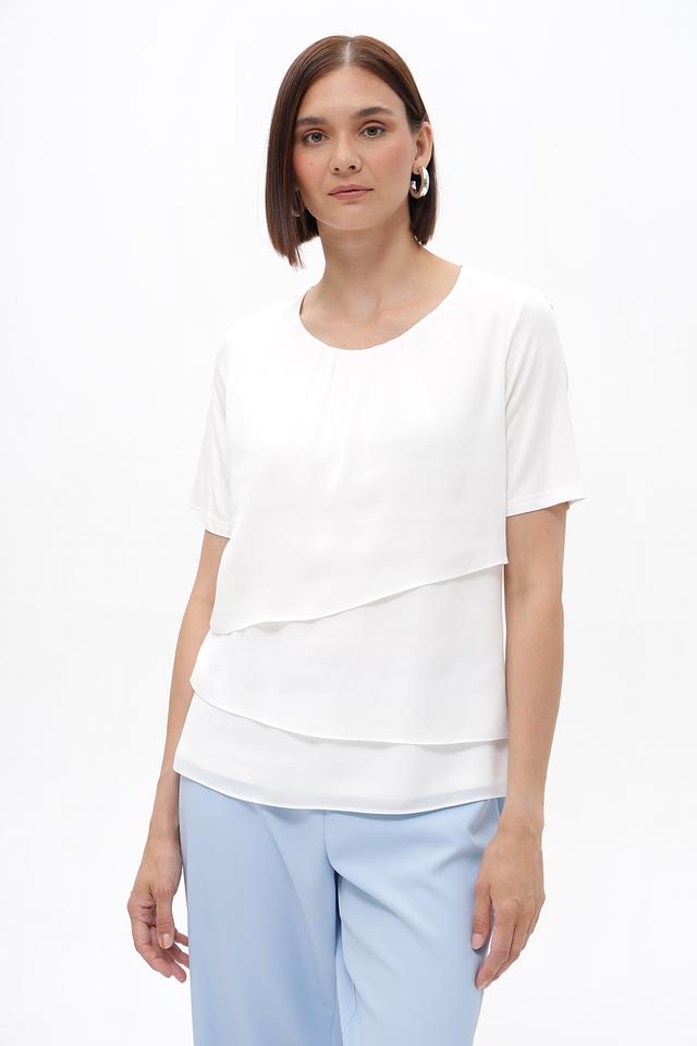 Белая блузка Frank Walder с многослойным верхом – элегантный выбор для создания стильного образа. Модель выполнена из вискозы с добавлением эластана, что обеспечивает комфорт и приятные ощущения при носке. Блузка идеально подойдет для работы или особых случаев. Состав: вискоза 93%, эластан 7%
