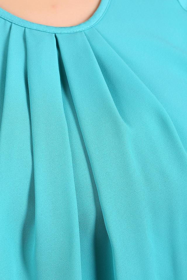 - Дизайн: Классический крой с короткими рукавами и округлым вырезом горловины. Центральная часть блузы украшена изящной драпировкой, которая придает изделию особый шарм и визуально стройнит.