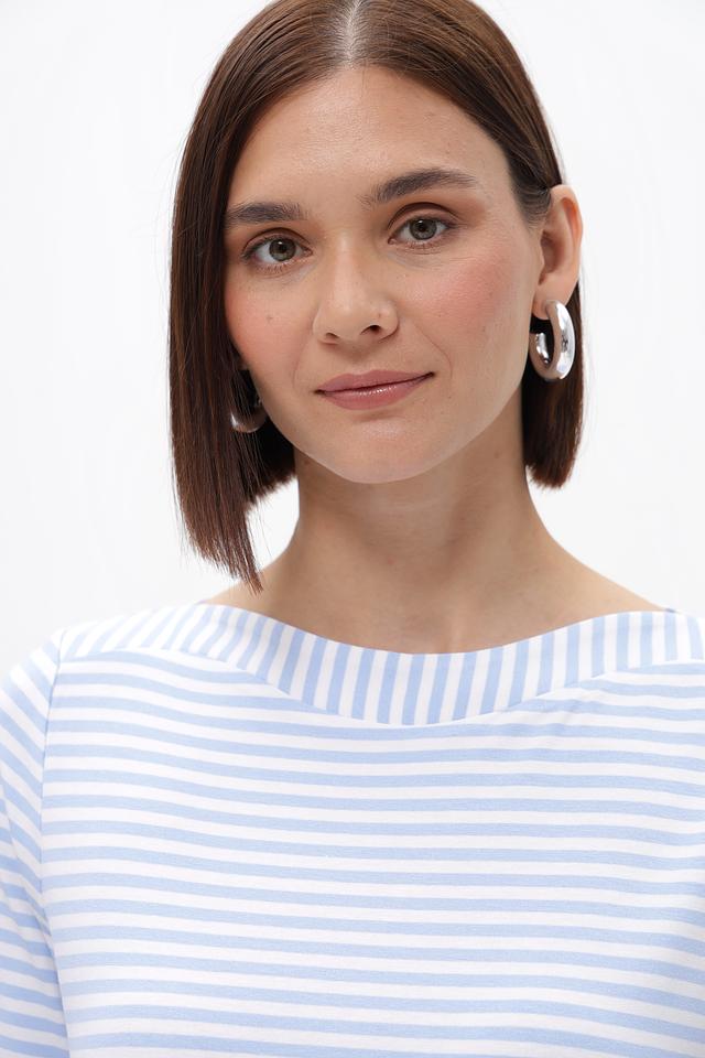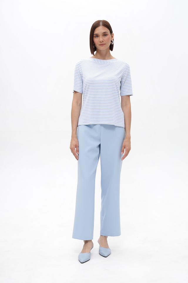 Женская футболка Frank Walder голубого цвета в классическую полоску. Модель выполнена из мягкой вискозы с добавлением эластана, что обеспечивает комфорт и отличную посадку по фигуре. Идеальный выбор для создания повседневных образов. Состав: вискоза 96%, эластан 4%