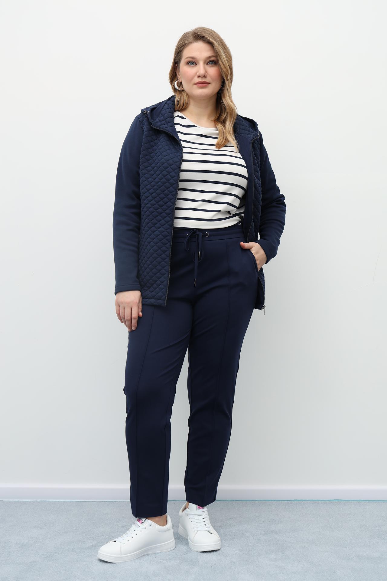 - Материал: 97% полиэстер, 3% эластан. Благодаря эластану брюки отлично держат форму и обеспечивают комфортную посадку по фигуре.