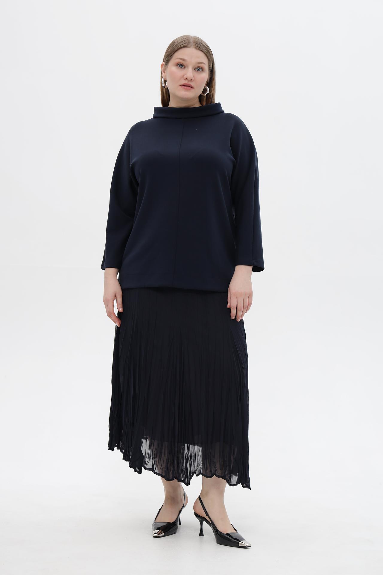 Сочетание модала, полиэстера и эластана в составе ткани гарантирует приятные тактильные ощущения, износостойкость и отличную посадку по фигуре. Этот пуловер станет основой множества образов, легко сочетаясь как с юбками, так и с брюками. Он идеально подходит для создания элегантных и современных ансамблей.