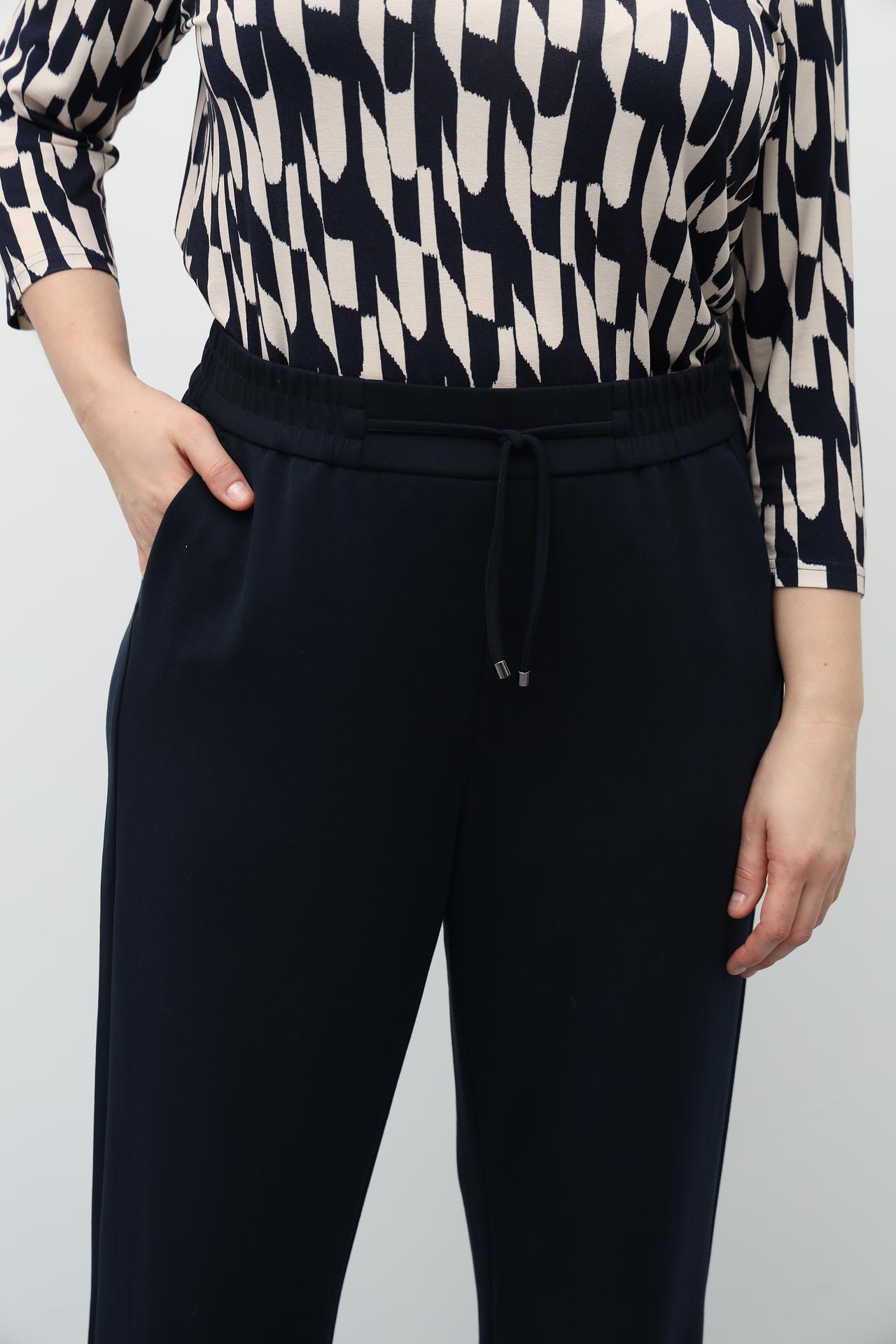 - Универсальность: Темно-синий цвет и лаконичный дизайн делают брюки универсальными для создания различных образов – от кэжуал до более формальных.