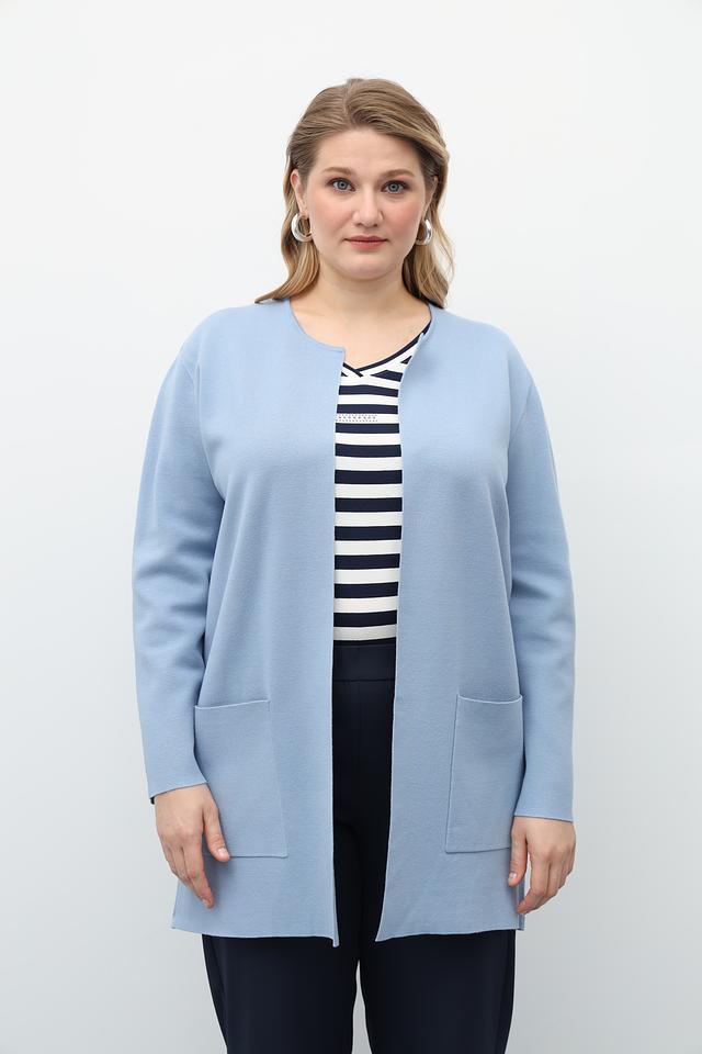 Голубой жакет от Frank Walder из вискозы с полиэстером. Модель с открытым силуэтом и накладными карманами. Комфортный и универсальный выбор для создания стильных образов. Состав: вискоза 72%, полиэстер 28%