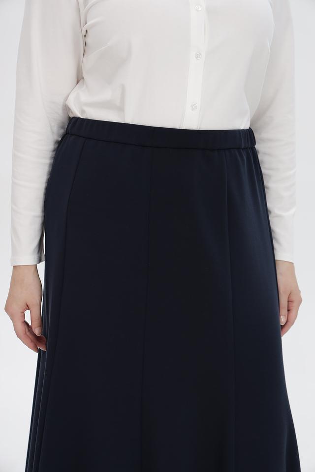 Изготовлена из сочетания модала (55%), полиэстера (39%) и эластана (6%). Модал придает юбке мягкость и приятные тактильные ощущения, полиэстер обеспечивает устойчивость к сминанию, а эластан – свободу движений.