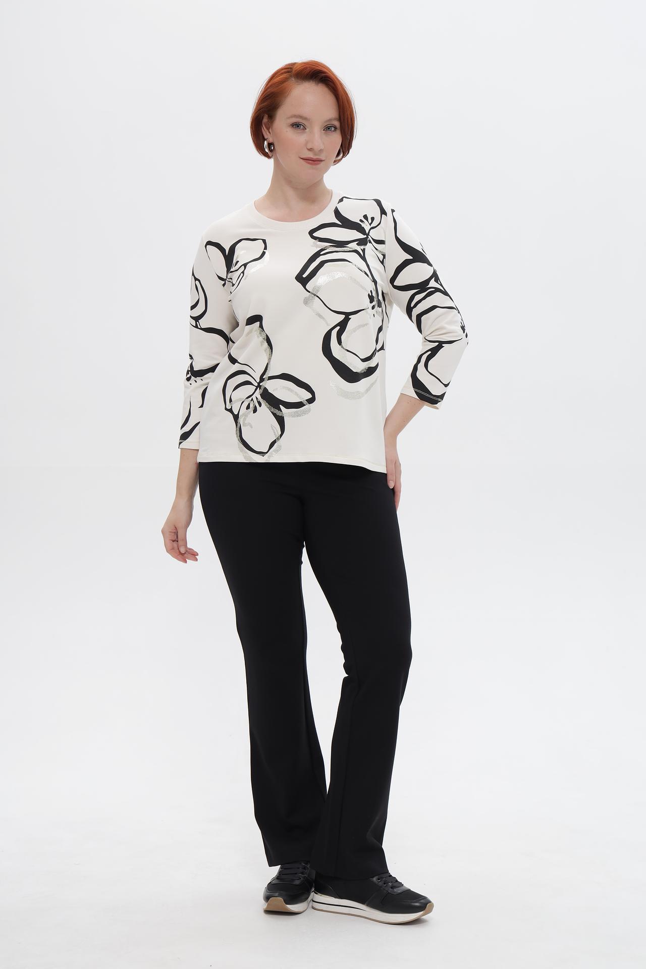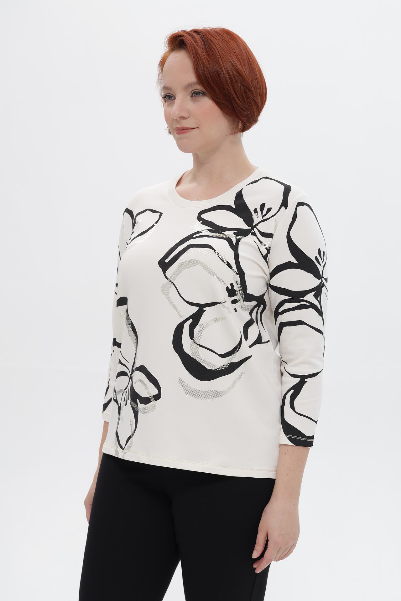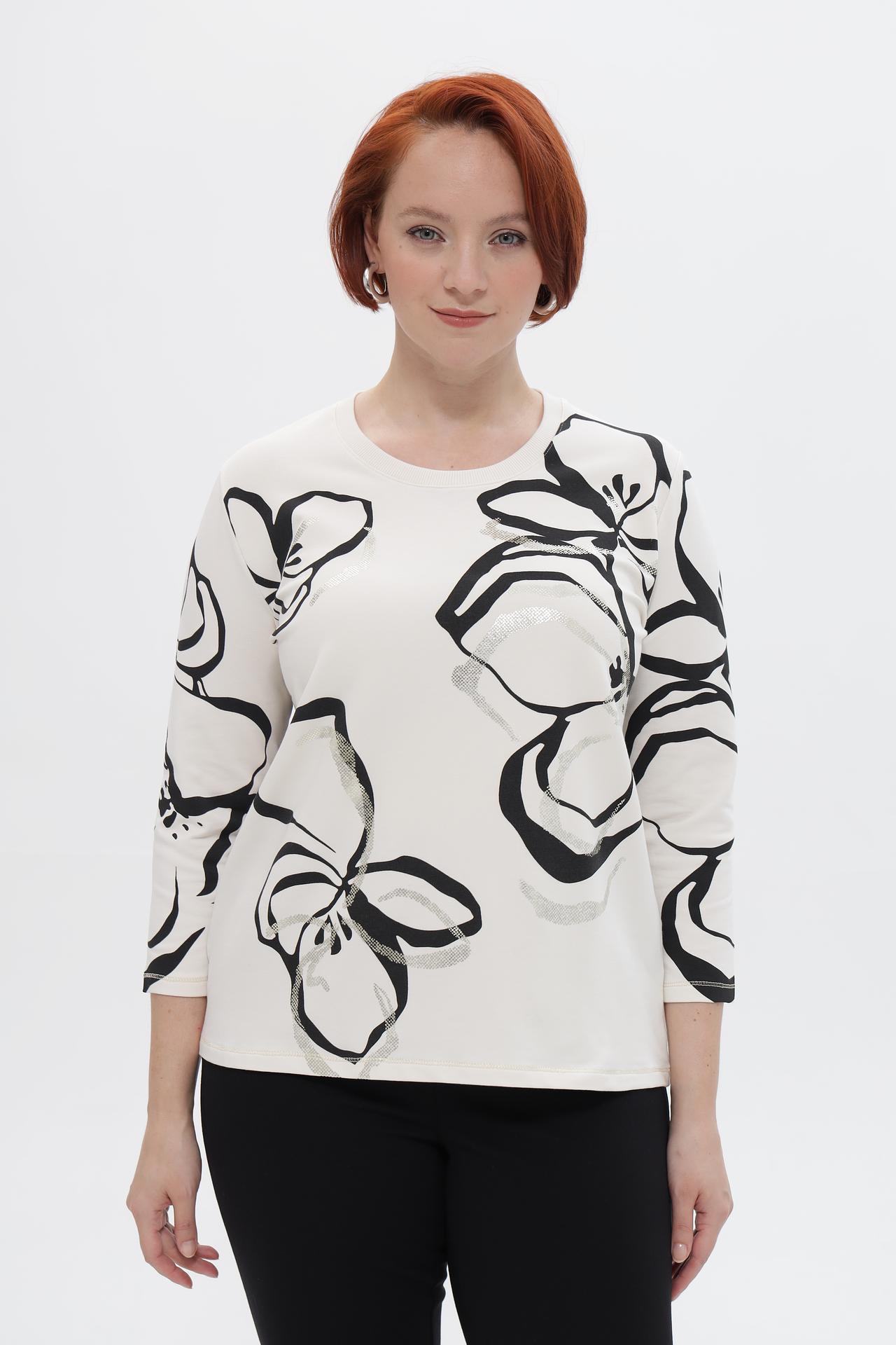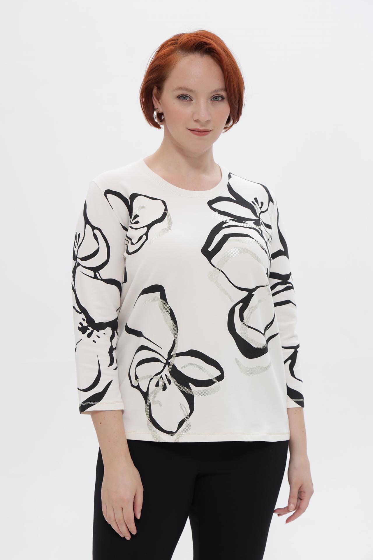 - Дизайн и Принт: Оригинальный принт с цветочными мотивами и деликатными серебристыми акцентами делает пуловер стильным акцентом вашего наряда. Рукав 3/4 добавляет изящества.