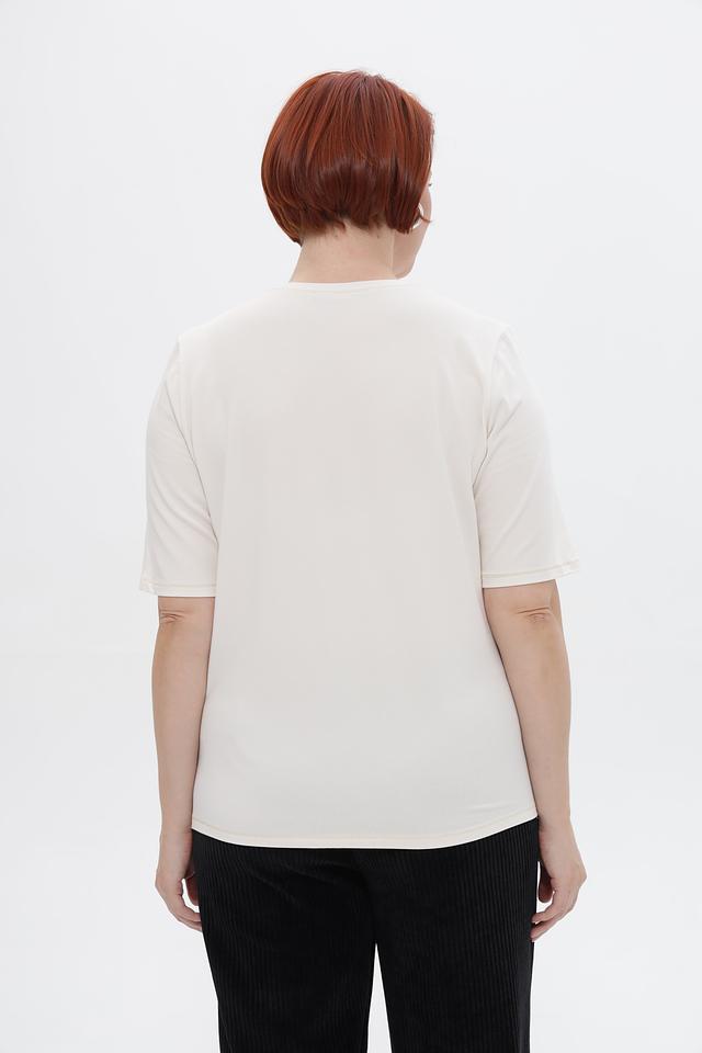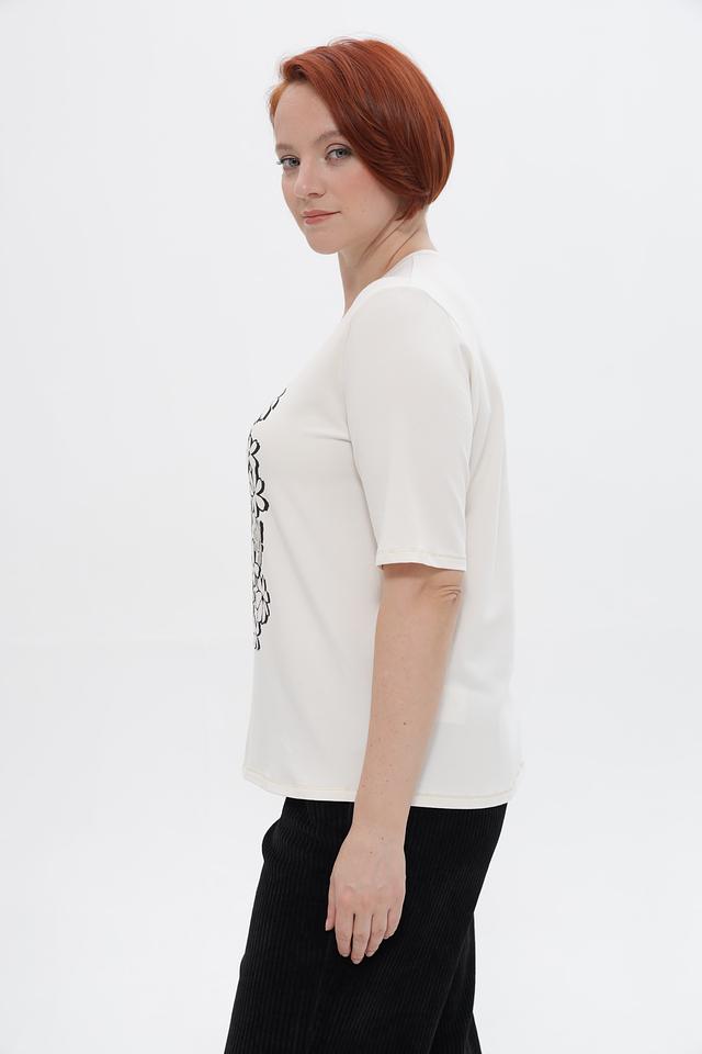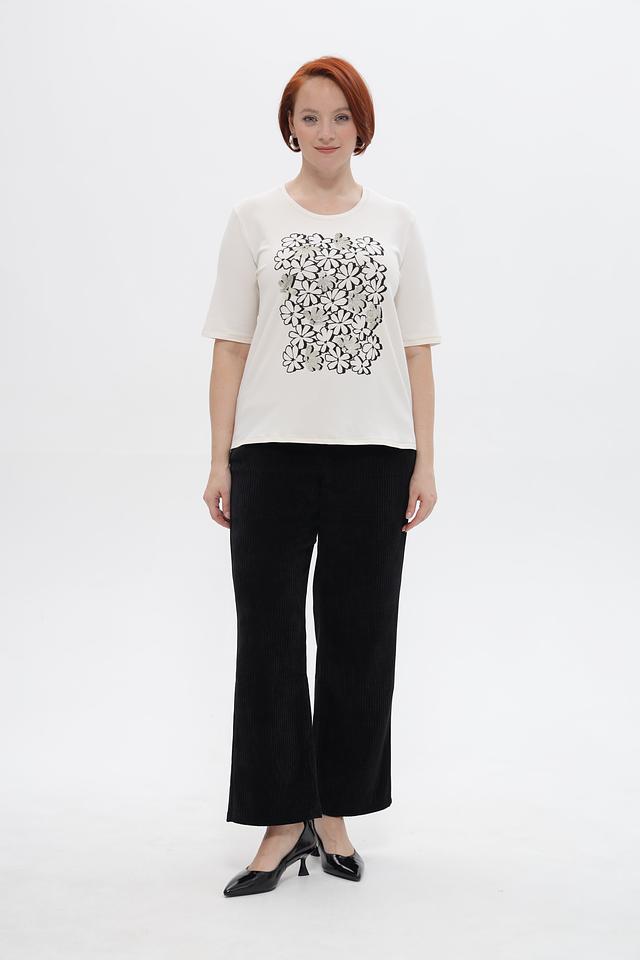 Круглый вырез горловины и укороченные рукава делают футболку универсальной для создания различных образов. Она отлично сочетается с брюками, юбками и джинсами. Подходит для повседневной носки, а также для создания более нарядных луков.