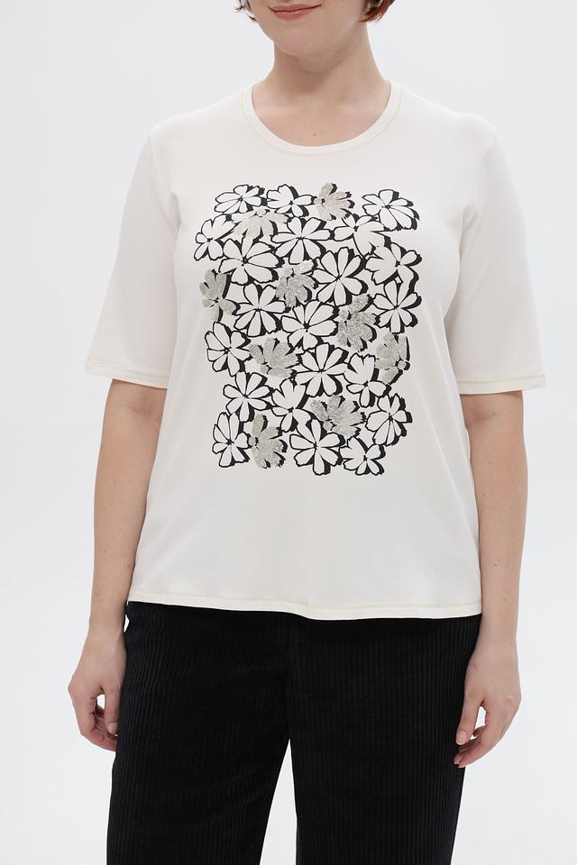 Женская футболка от бренда Frank Walder выполнена в белом цвете и украшена стильным цветочным принтом. Модель имеет свободный крой, обеспечивающий комфортную посадку по фигуре.