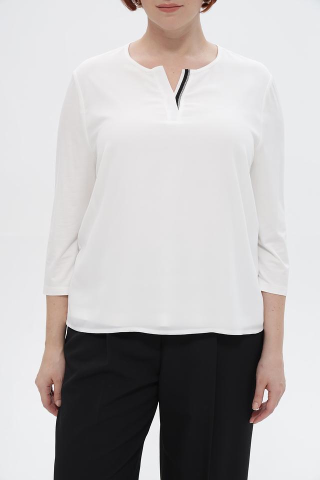Белая блузка Frank Walder из вискозы с V-образным вырезом, декорированным черной тесьмой. Легкая и воздушная модель с рукавами 3/4 идеально подойдет для создания элегантного образа. Состав: 93% вискоза, 7% эластан. Состав: вискоза 93%, эластан 7%