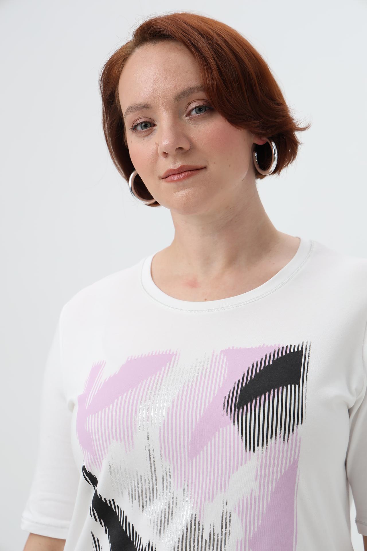- Универсальность: Белая футболка с принтом легко сочетается с различными элементами гардероба — от джинсов и брюк до юбок. Она подойдет для создания как расслабленных, так и более собранных ансамблей.