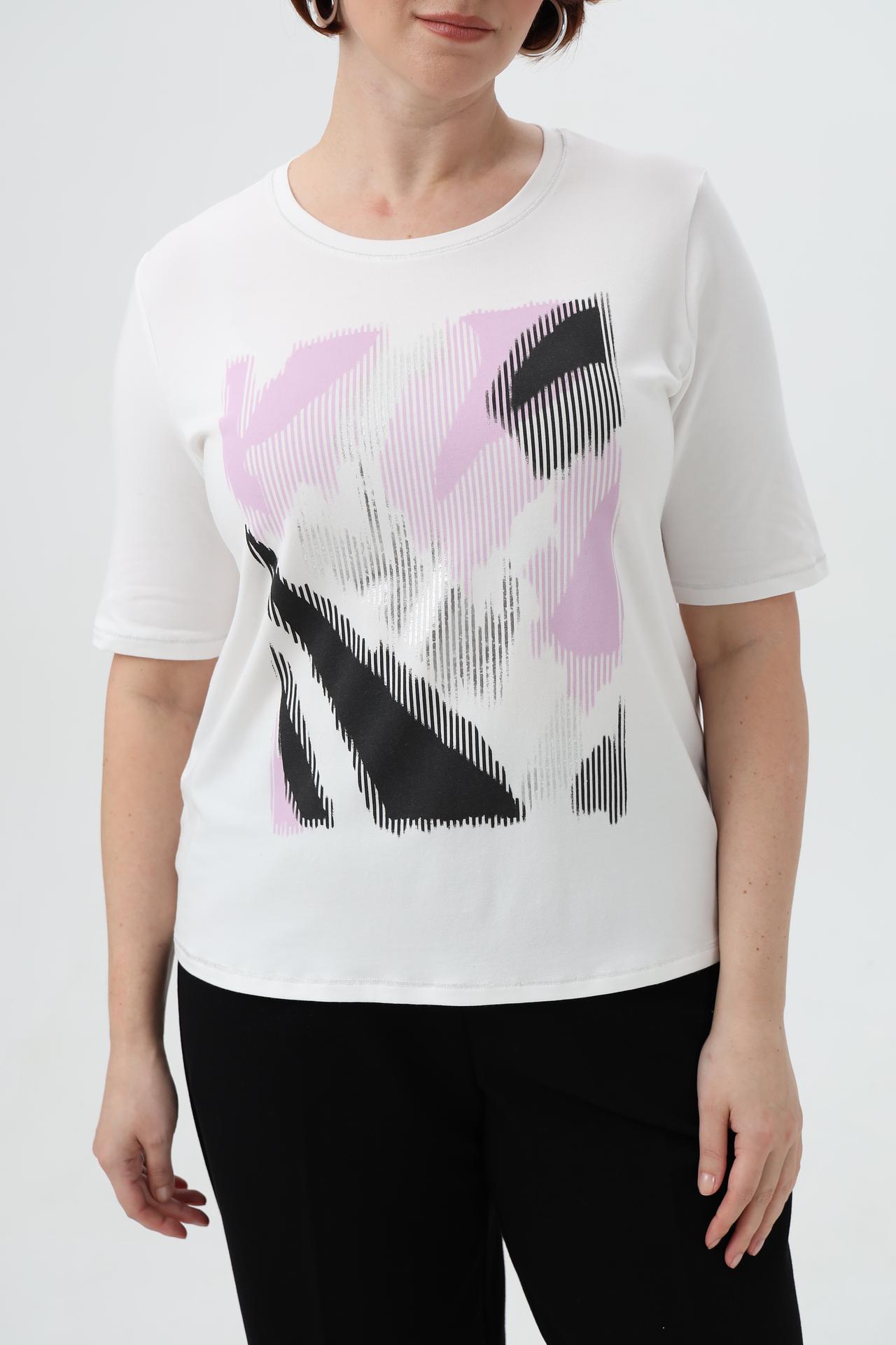 Стильная футболка Frank Walder — идеальный выбор для создания элегантных повседневных образов. Модель выполнена в базовом белом цвете и дополнена эффектным абстрактным принтом с розовыми, черными и серебристыми элементами, который придаст вашему наряду изюминку.