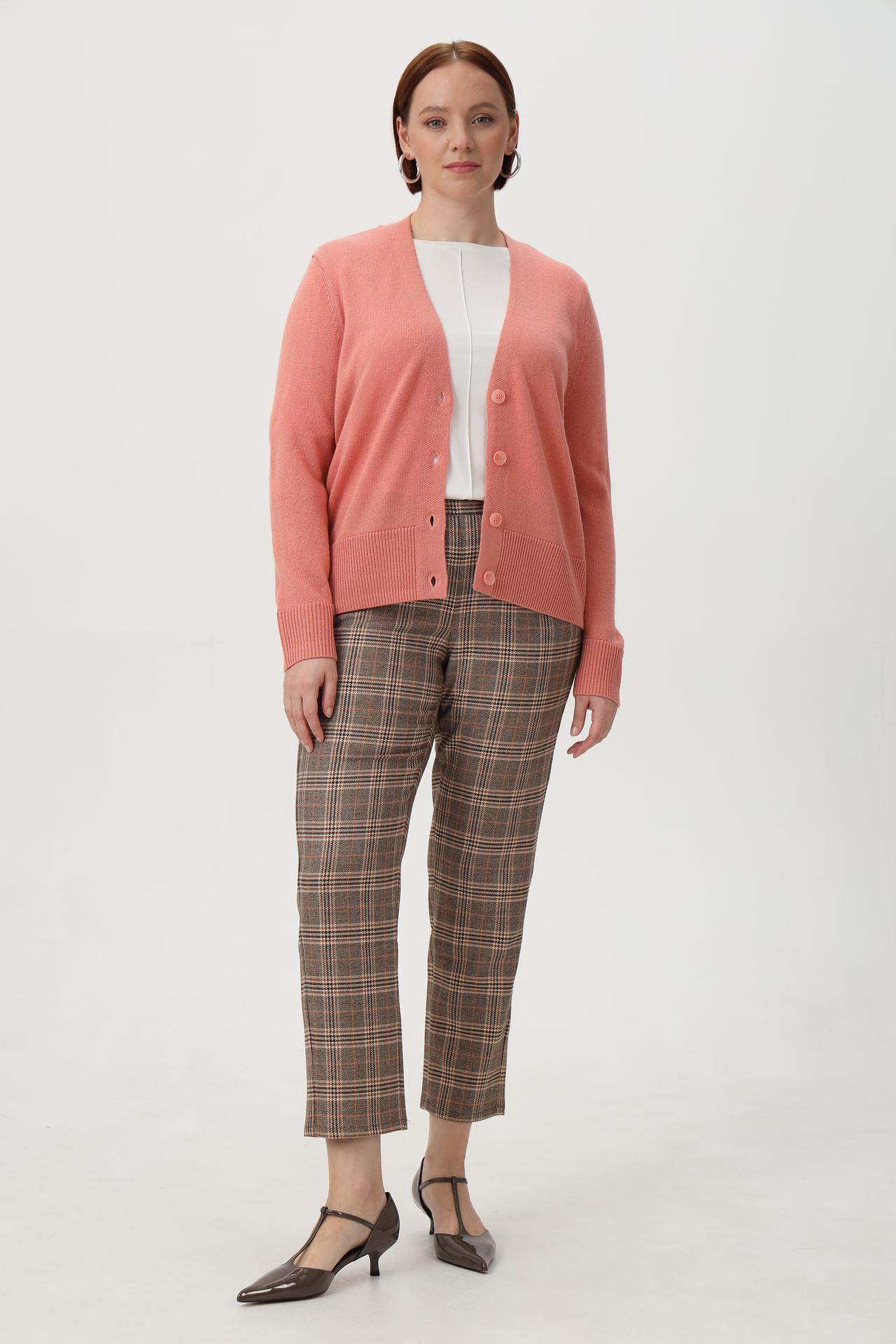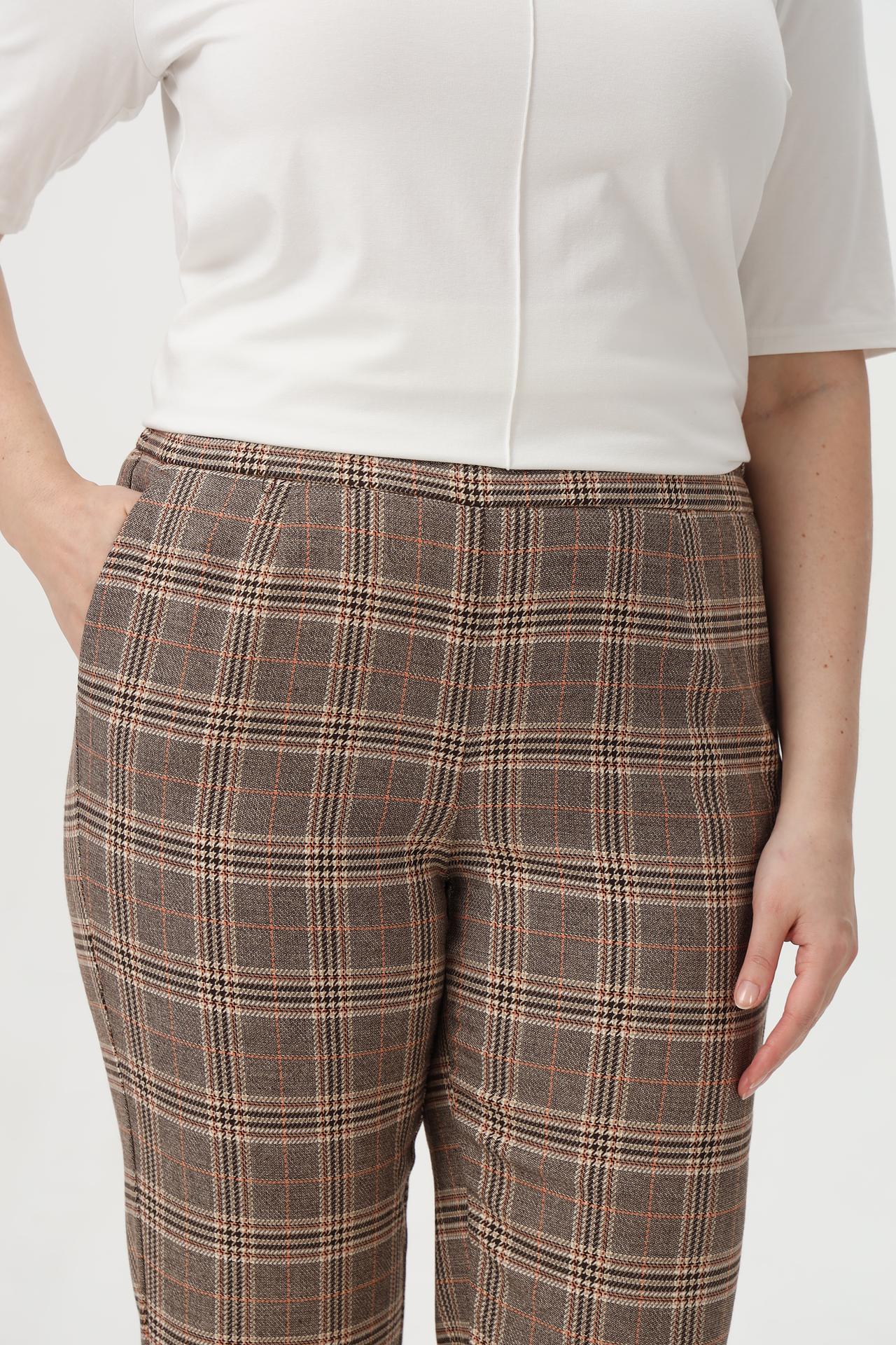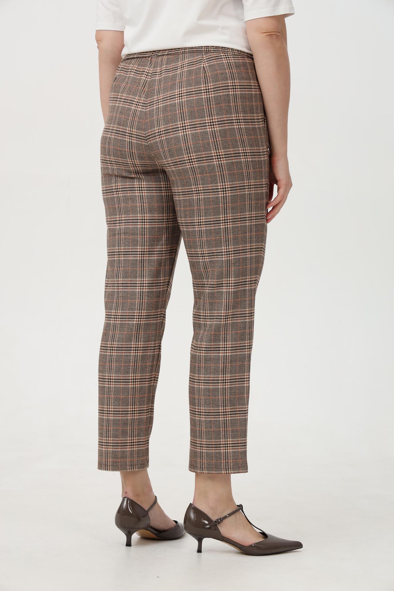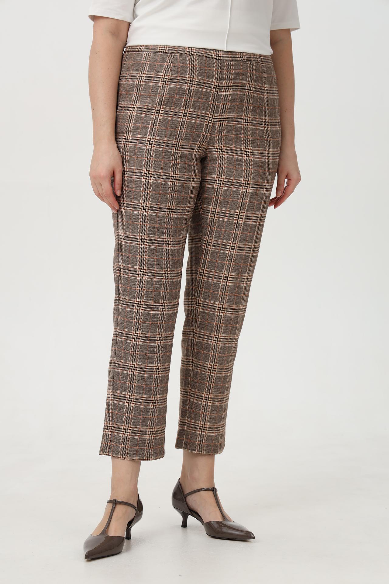 - Дизайн: Классический прямой крой с укороченной длиной. Оригинальная клетка в коричнево-бежевых тонах добавляет образу изысканности.