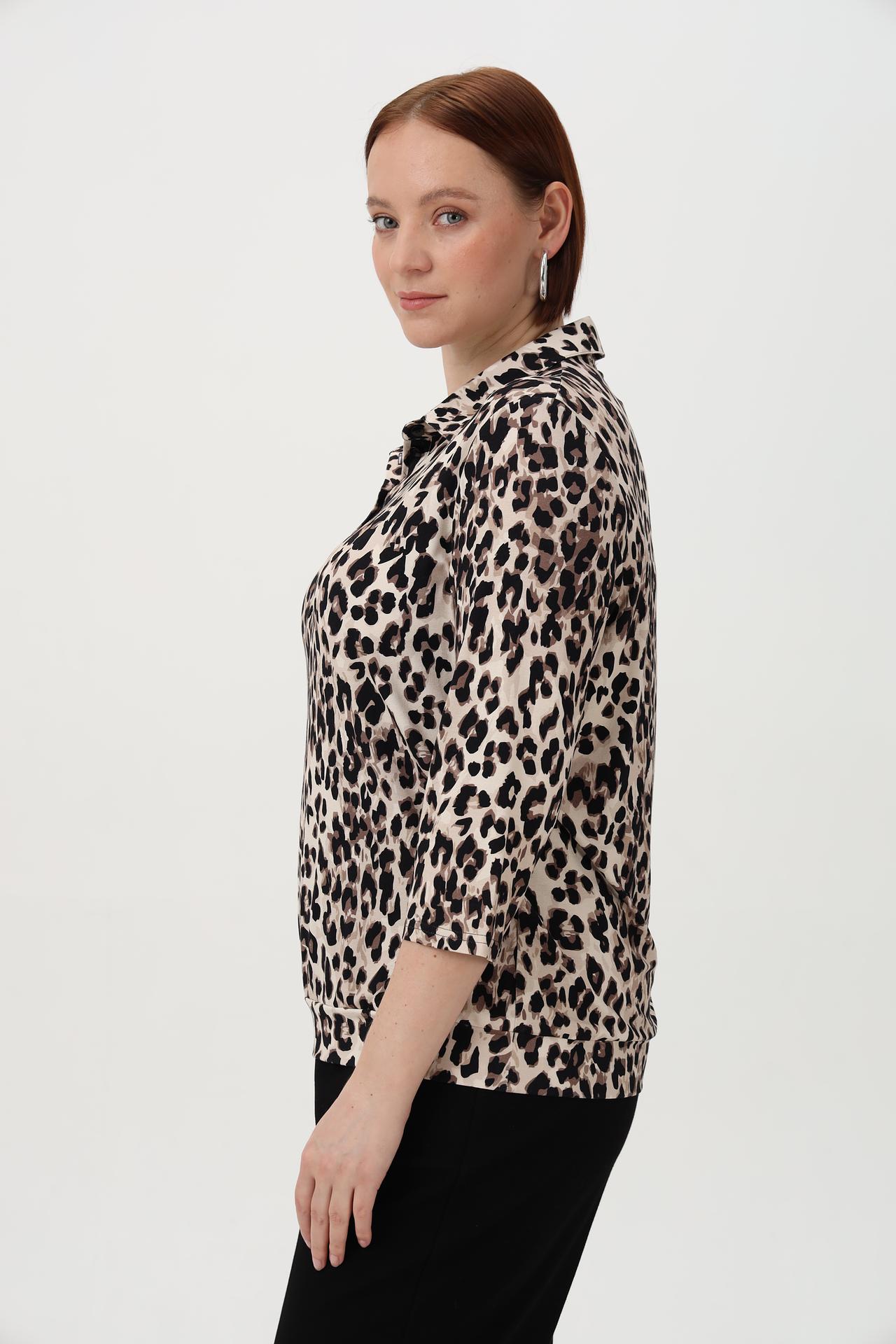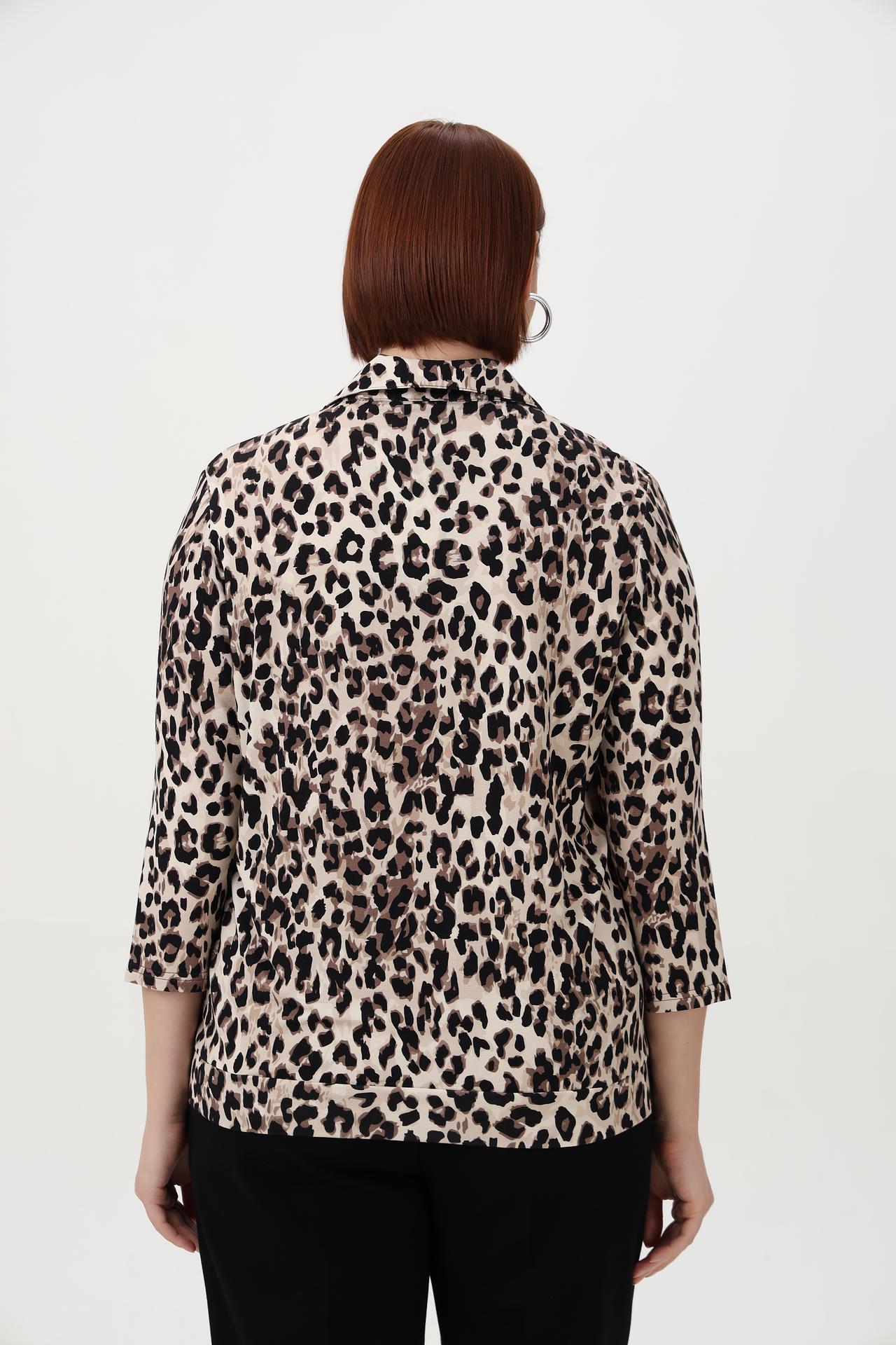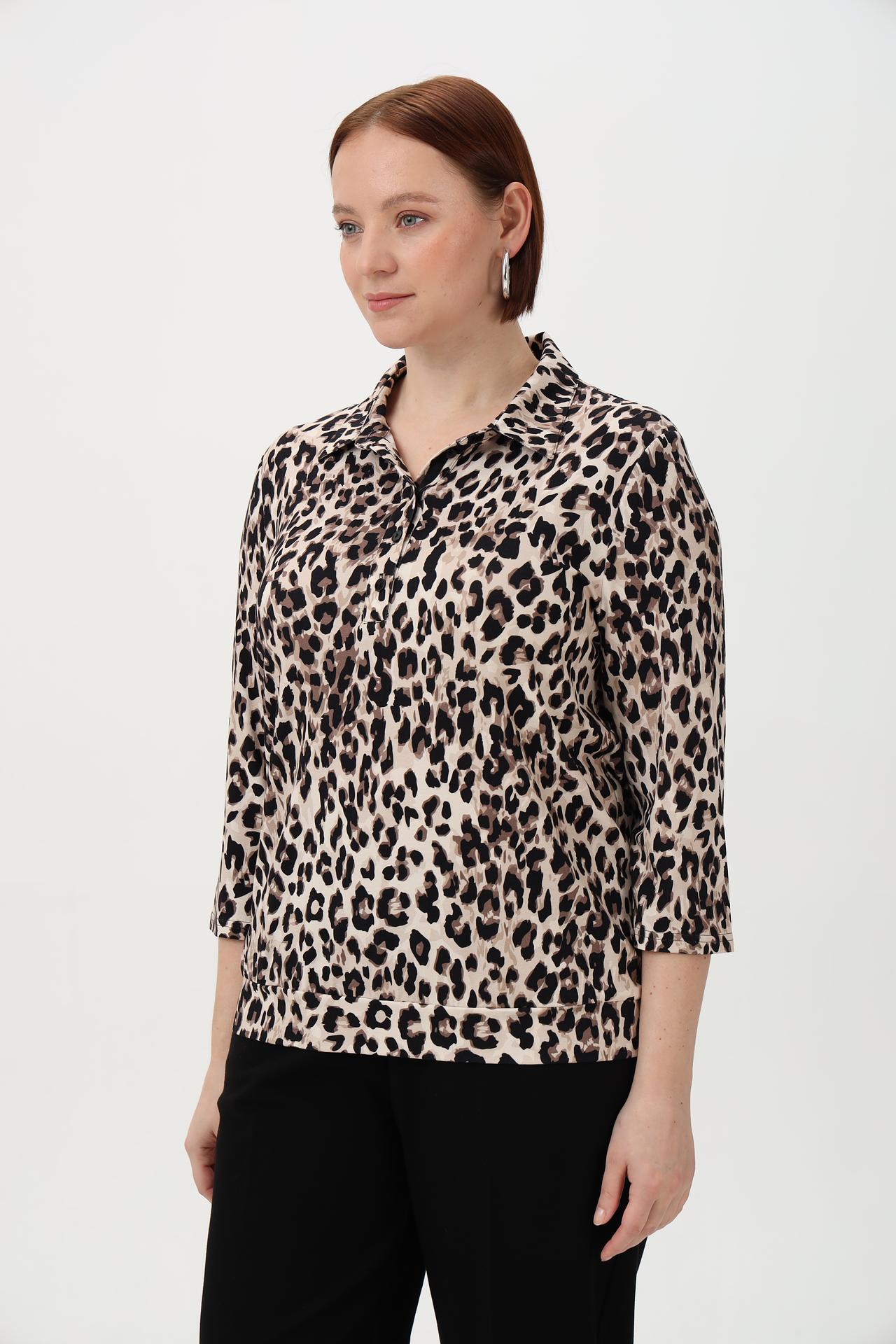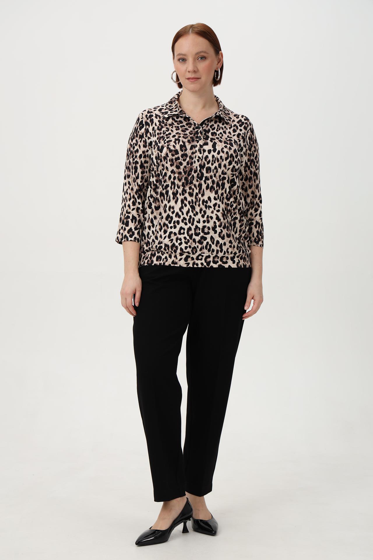 - Дизайн: Яркий леопардовый принт делает эту блузу акцентным элементом гардероба. Классический крой и воротник-стойка подходят для создания как повседневных, так и более нарядных образов.