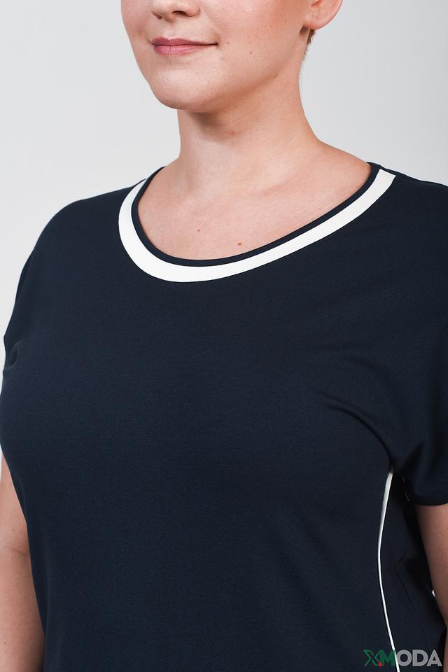Женская футболка Frank Walder темно-синего цвета с короткими рукавами и контрастной белой отделкой на горловине и плечах. Модель выполнена из мягкой вискозы с добавлением эластана для комфорта и хорошей посадки. Состав: вискоза 93%, эластан 3%