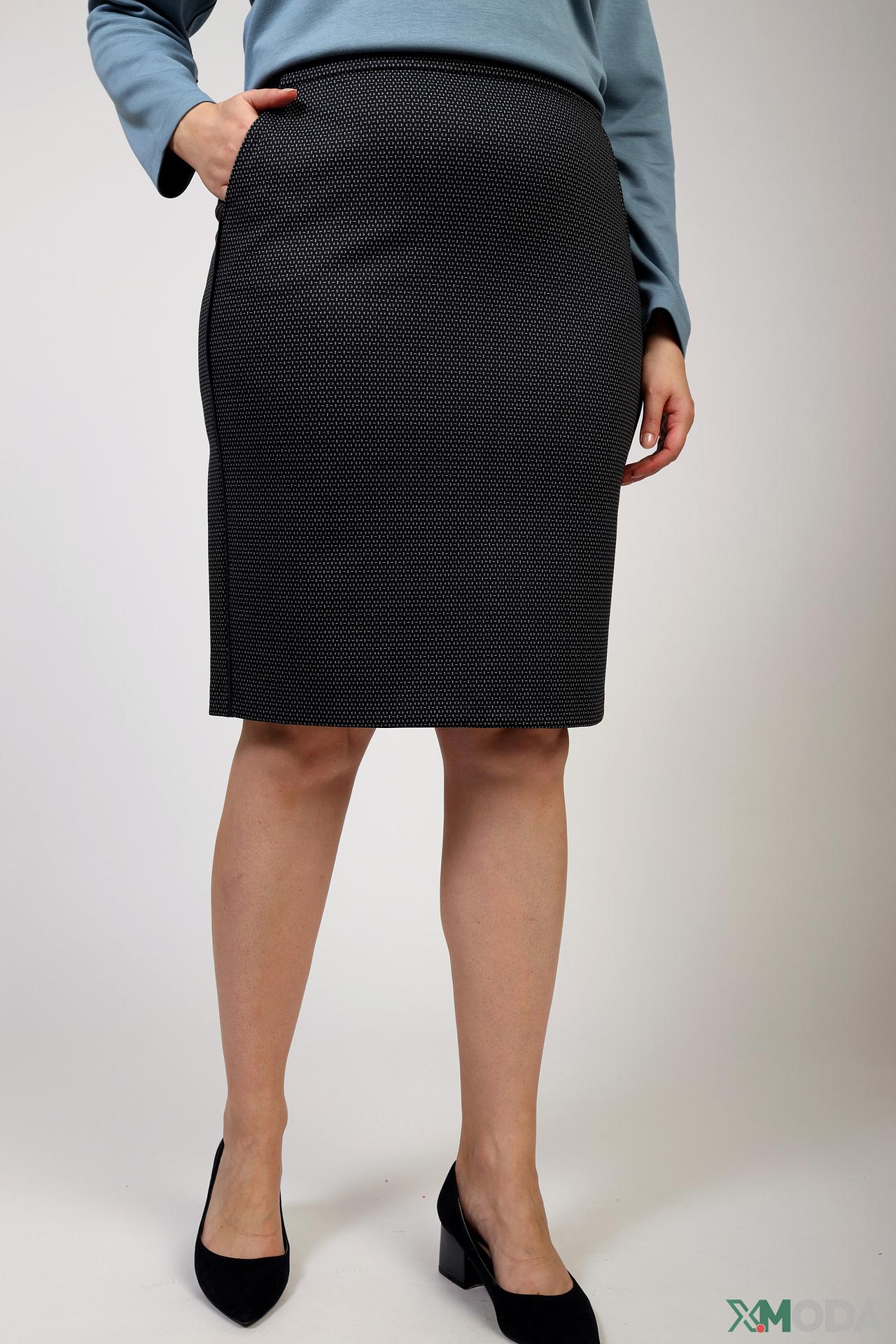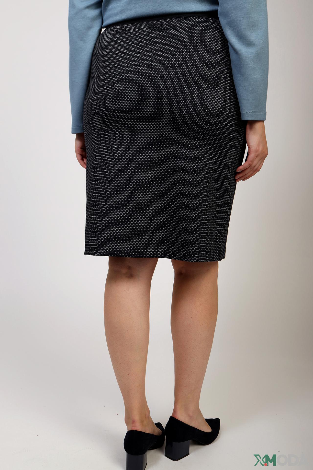 - Дизайн: Модель выполнена в универсальном черном цвете с мелким контрастным узором. Это позволяет легко сочетать юбку с различными блузами, рубашками и топами.