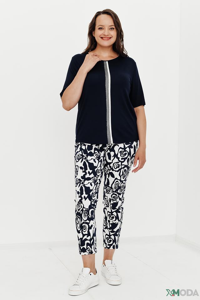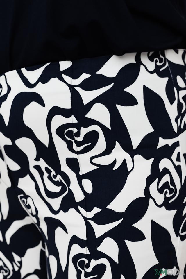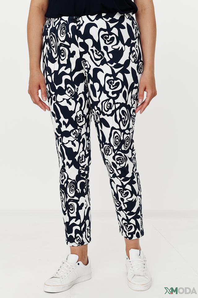 Особенностью модели является эффектный цветочный принт в сине-белой гамме, который добавляет брюкам изысканности и оригинальности. Прямой крой и укороченная длина делают их универсальными и подходящими для различных случаев.