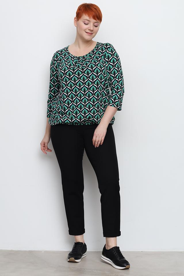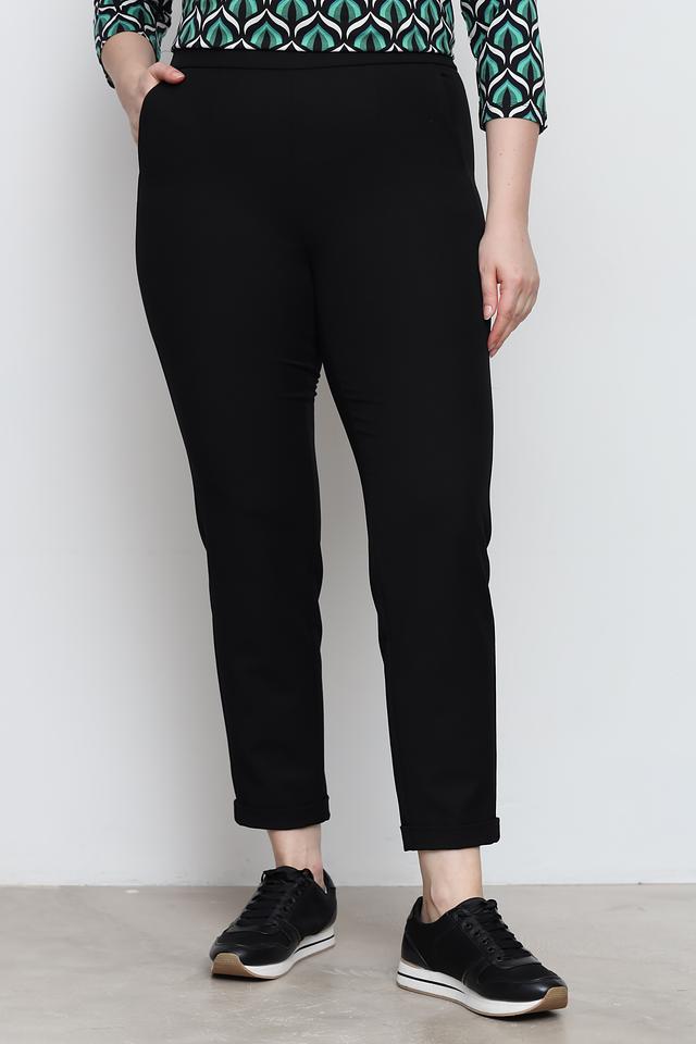 Брюки имеют прямой крой и стандартную посадку по фигуре. Эластичный пояс обеспечивает комфортную посадку и свободу движений. Ткань, состоящая из полиэстера, вискозы и эластана, приятна на ощупь и хорошо держит форму.