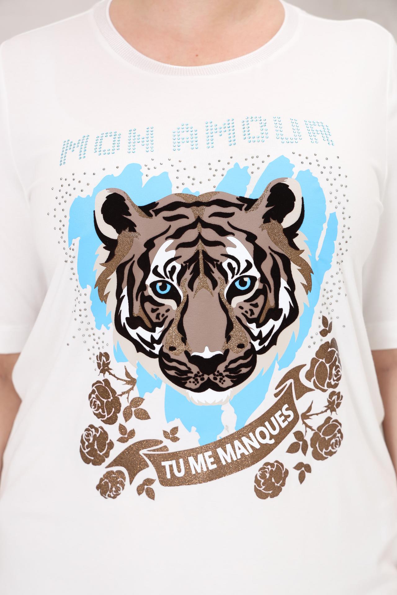 - Стильный дизайн: Модный принт придает футболке индивидуальность и делает ее отличным выбором для современных образов.