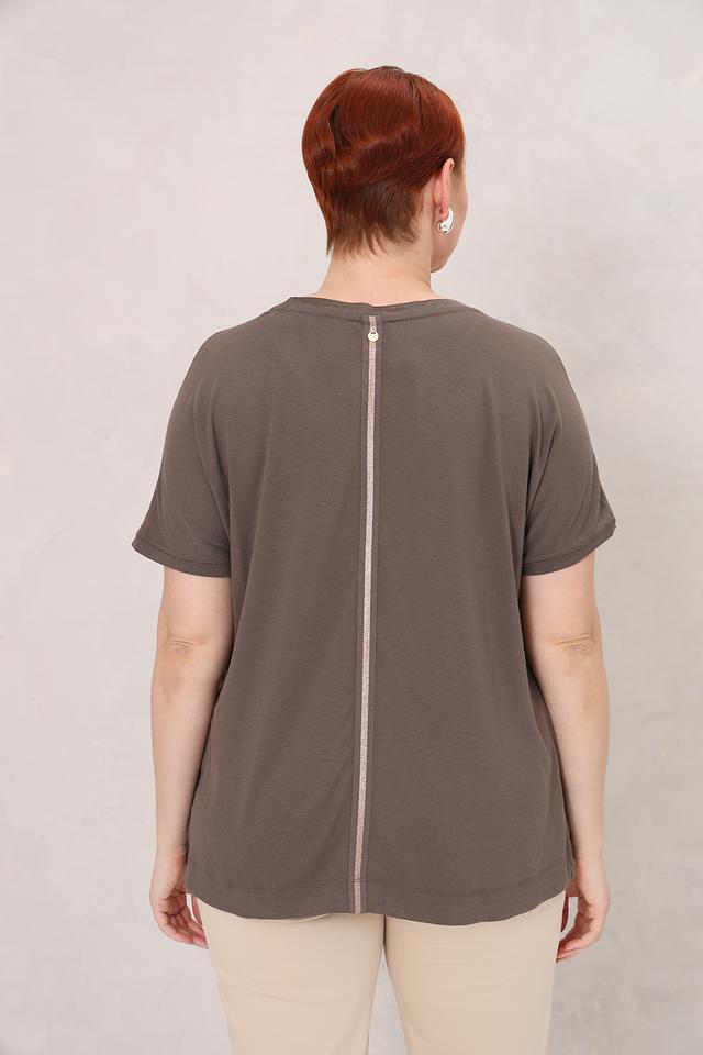 Футболка изготовлена из высококачественной вискозы (90%) с добавлением эластана (10%), что обеспечивает мягкость, приятные тактильные ощущения и хорошую посадку по фигуре. На спине расположена декоративная молния.