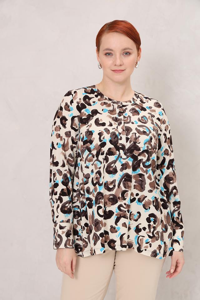 Модель имеет свободный крой, который обеспечивает комфорт и свободу движений. Длинные рукава и округлый вырез горловины делают эту блузу универсальной и подходящей для различных случаев.