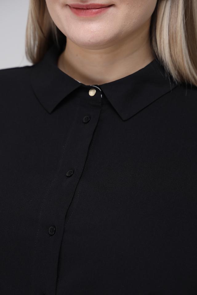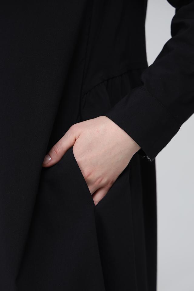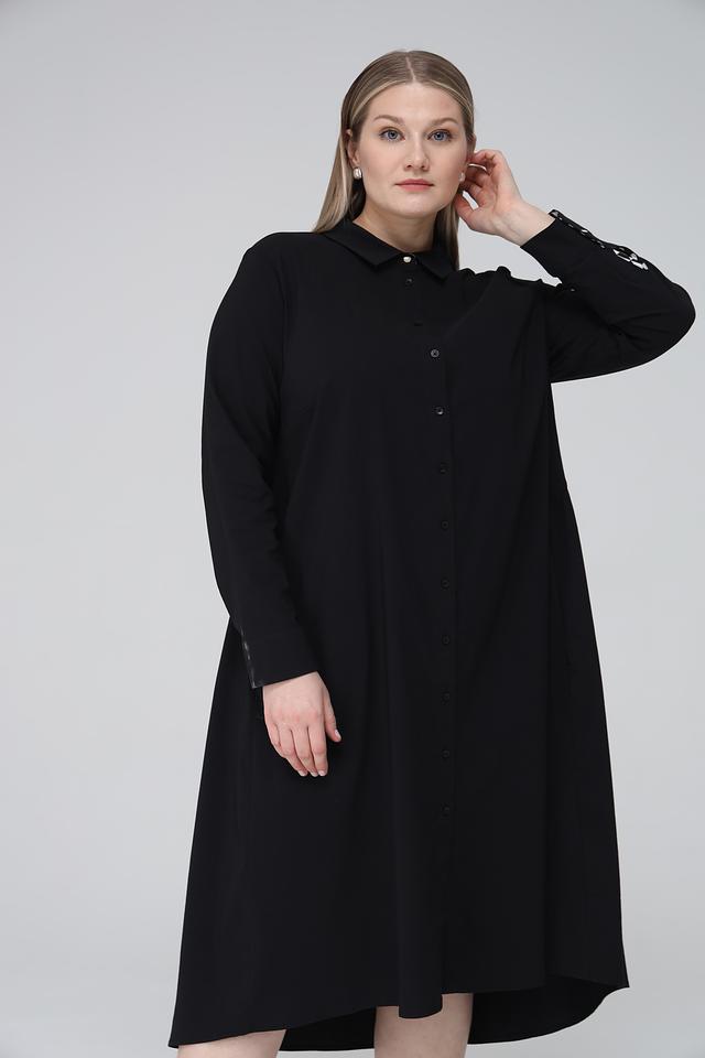 Чёрное платье рубашка от Frapp – стильное и комфортное решение для повседневного образа. Модель выполнена из мягкой ткани с добавлением хлопка, имеет длинный рукав и застёжку на пуговицы. Состав: хлопок 69%, полиэстер 28%, эластан 3%